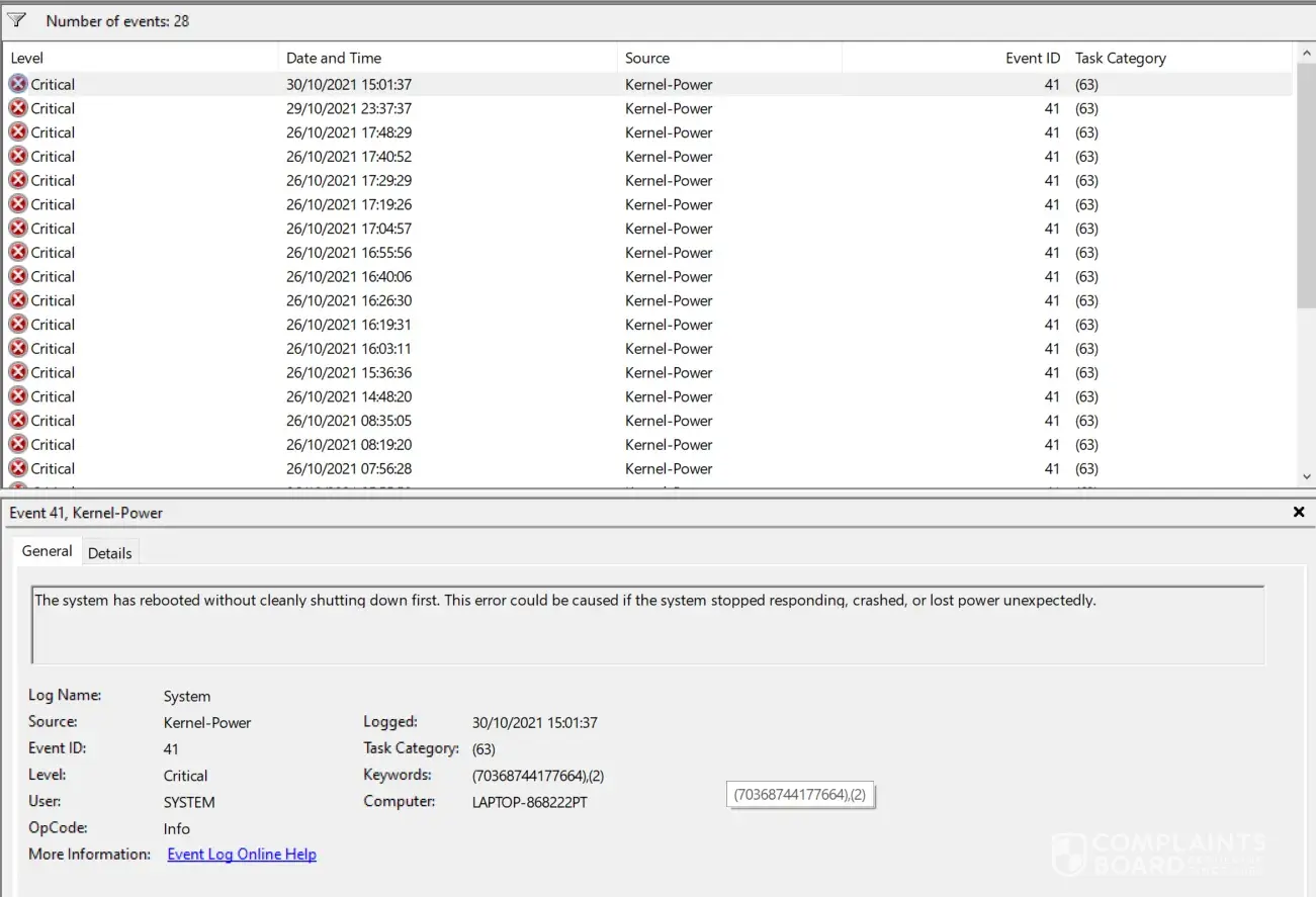 I have had my laptop for a year it went of for repair and yet is still rebooting every 5 mins and having errors after paying over £1000 pounds for this laptop and owning it for 1 year and 18 days this is a joke, if I want it looking at again I would have to pay knowing full well that this is an ASUS problem and it is well documented on the forums, This is my 4th ASUS laptop and will be my last I refuse to throw any more money down the drain