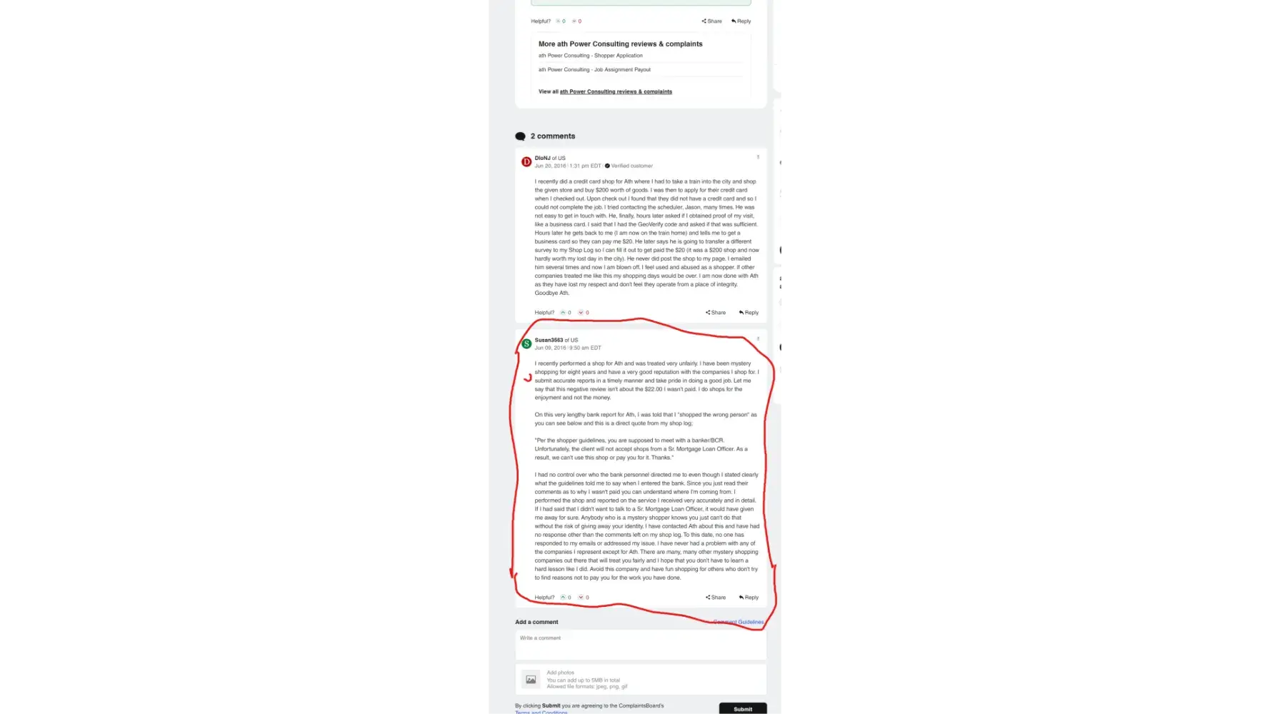 I had no control over who the bank personnel directed me to even though I stated clearly what the guidelines told me to say when I entered the bank. Since you just read their comments as to why I wasn't paid you can understand where I'm coming from. I performed the shop and reported on the service I received very accurately and in detail. If I had said that I didn't want to talk to a Sr. Mortgage Loan Officer, it would have given me away for sure. Anybody who is a mystery shopper knows you just can't do that without the risk of giving away your identity. I have contacted Ath about this and have had no response other than the comments left on my shop log. To this date, no one has responded to my emails or addressed my issue. I have never had a problem with any of the companies I represent except for Ath. There are many, many other mystery shopping companies out there that will treat you fairly and I hope that you don't have to learn a hard lesson like I did. Avoid this company and have fun shopping for others who don't try to find reasons not to pay you for the work you have done.