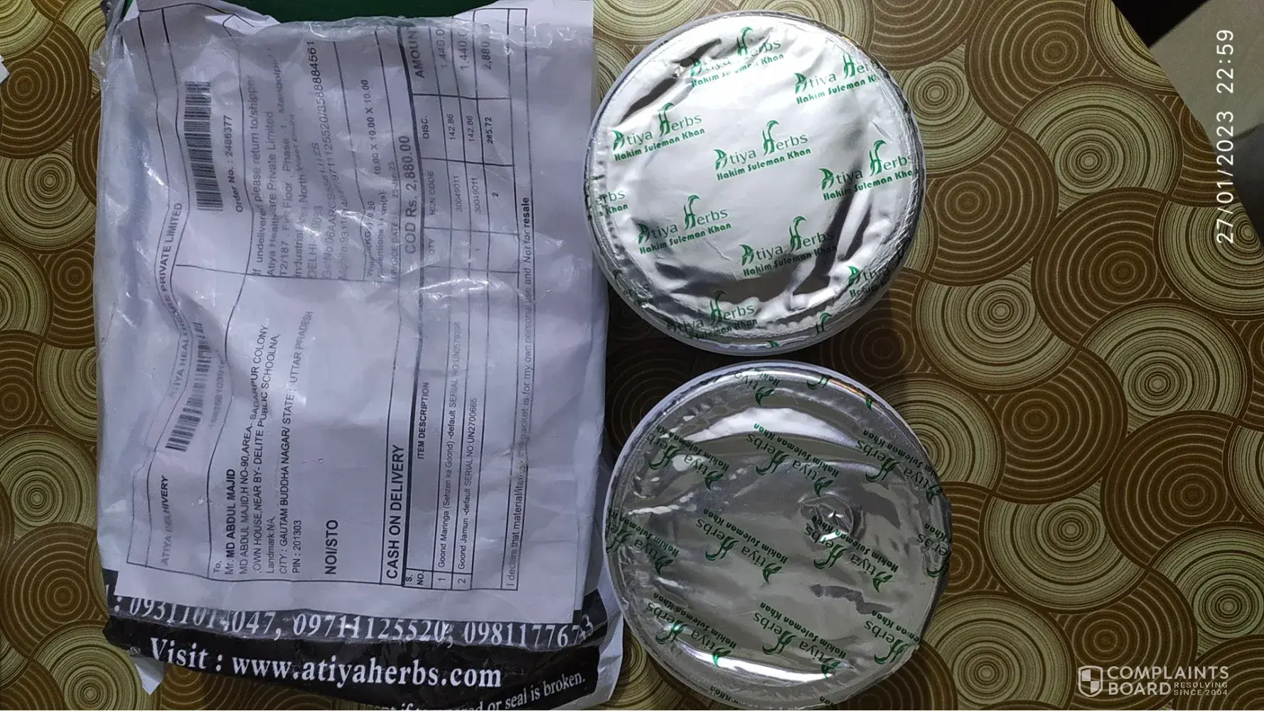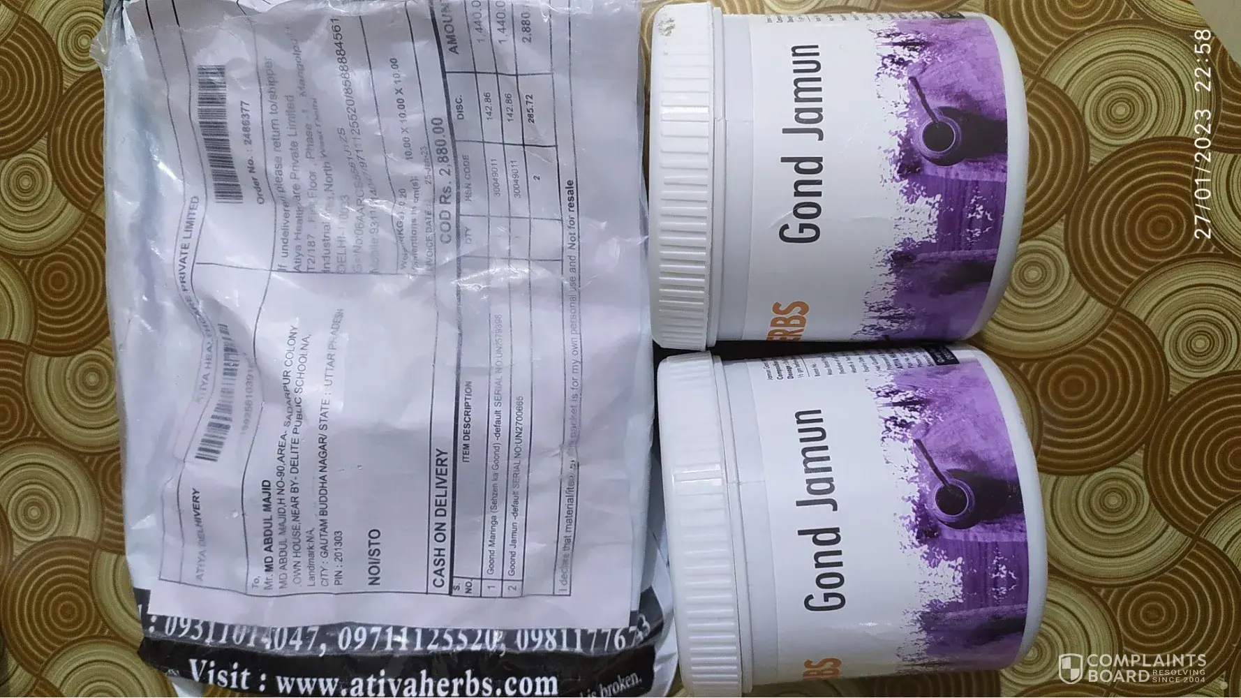 We approach Atiya Herbs for solving our probkems, not getting negative feedback from them...