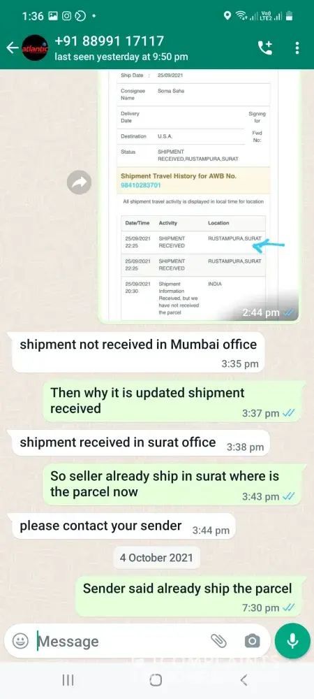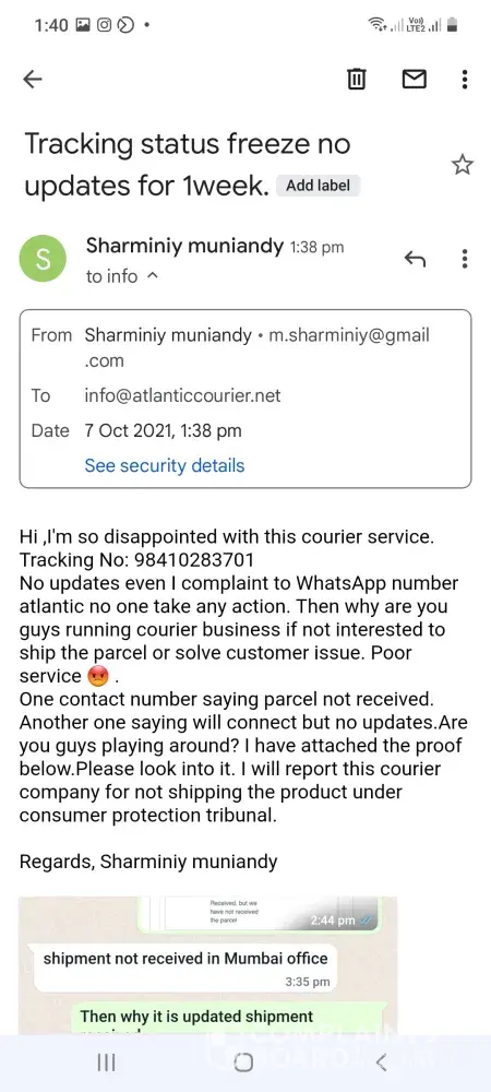 I have to complained something. i have a friend thru internet or social networking site who told me that he will send me a package contain of personal thing. i'm afraid it's some kind of a scam he called me early this morning around 8:00 a.m that the shipment will arrived today 09/09/2014 .. as i waited i print out the paper or a proof that he send me the a package which is 1 Trunk Box which is illustrated on the file. you can see the proof that i attached i hope you will give a feedback as soon as you read this ! i need to know it soon if it is true .. the name of the sender is Roger Philipe . then a while ago a pilipino netizen called me that the package arrived here in philippines but it can't be released if i wont pay a charge of 19 thousand peso. i'm not a rich person i cannot pay as big like that. im a government employee i worked as a reserved army but i dont have any salary ! and the one thing that makes me thinking why did the caller of this atlantic express and cargo from philippines knows what is inside the package ! please reply me !