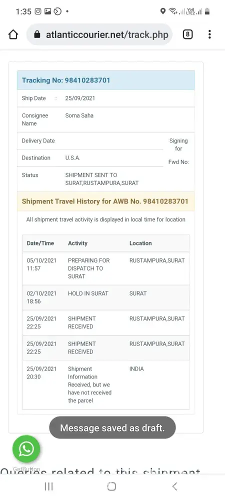 -2nd package tracking ID # 617575 (was receive after 35 days)