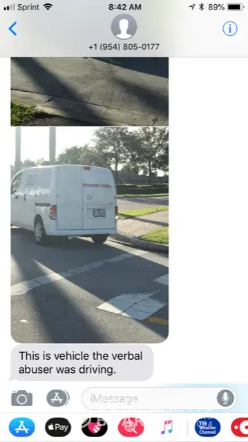 The City of Margate City Manager's Office received a complaint of an AT&T subcontractor being verbally abusive to resident [removed], at [removed]. She had expressed concern for the pole in the yard being a hazard to her young grandaughter as well as, as owner, being responsible for the safety of the swale area. Per Section 35-0.3 of our City Code, adjacent property owners are held responsible for swale maintenance including safety. She can be reached at [removed] or by email at [protected]@icloud.com. Attached are pictures of the work being conducted and the vehicle of the subcontractor.