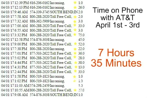 Tamala : I have my phone records I'd like to send to someone so they can see that I spent over 8 hours on the phone with AT&T over a 4 day period