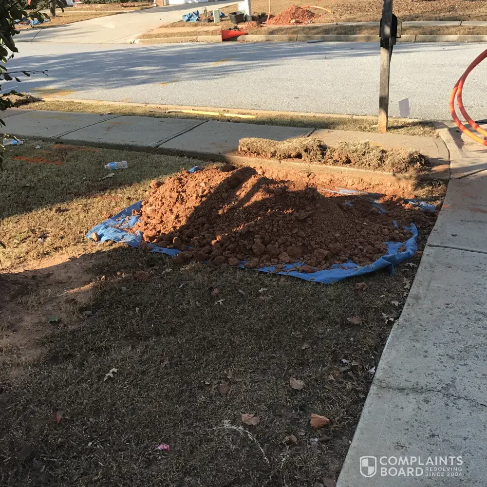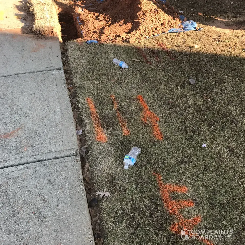On November 15, 2016 a group Hispanic workers arrived in my sub division and proceeded to dig up everyone's yard. I requested authorization and no one spoke English. Finally there supervisors comes over to explained they are installing new U-verse lines for our community. He explained it was authorized by the county. My only concern was making sure my property was returned to the pre-construction state. He assured me that this wouldn't be a problem. I have spent a great deal of money this past spring/summer having my yard resodded.I expect for it to look like it looked before the construction but it doesn't. Also the workers left empty water bottles all over my lawn. Please tell me who is going to pay to have my yard repaired.