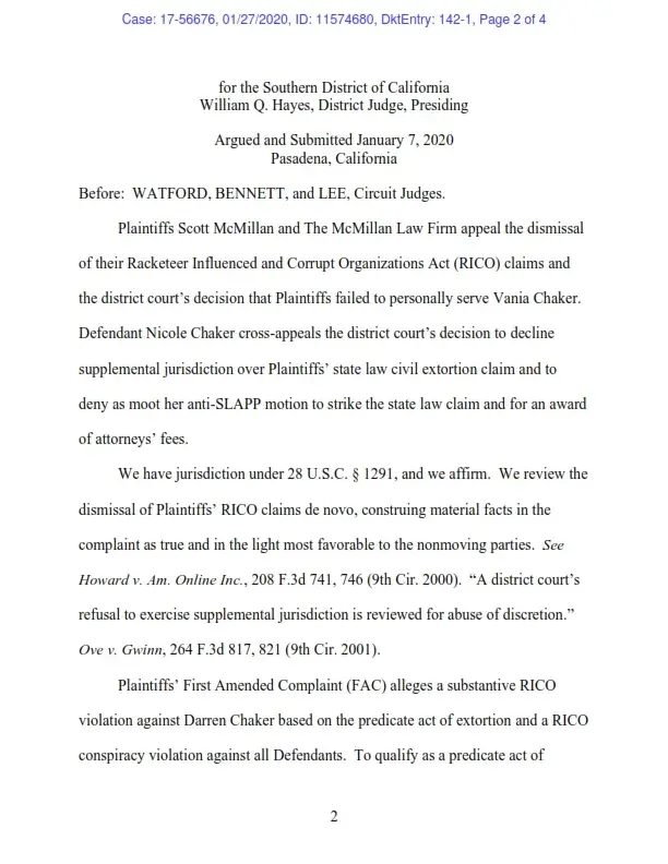 San Diego attorney Scott McMillan to remove public records sanctioning his conduct. The federal court dismissed the lawsuit and found it to be meritless. Scott McMillan with an office in La Mesa, California (east San Diego), then appealed to the Ninth Circuit. On January 27, 2020, the appellate court found the lawsuit aimed at censoring speech was meritle...