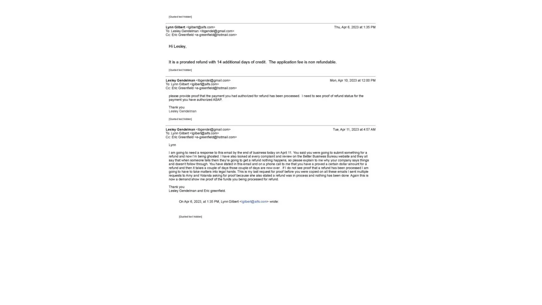 In my email to Amy yesterday I was crystal clear with my expectations, but I am letting you know them as well. You have a huge issue on your hands as it pertains to what has happened. So I expect every dime I paid to your organization refunded. I expect every dollar refunded immediately either in a direct deposit to my checking account, which is how I paid or a check mailed to me and I expect it to be processed by the end of the week.