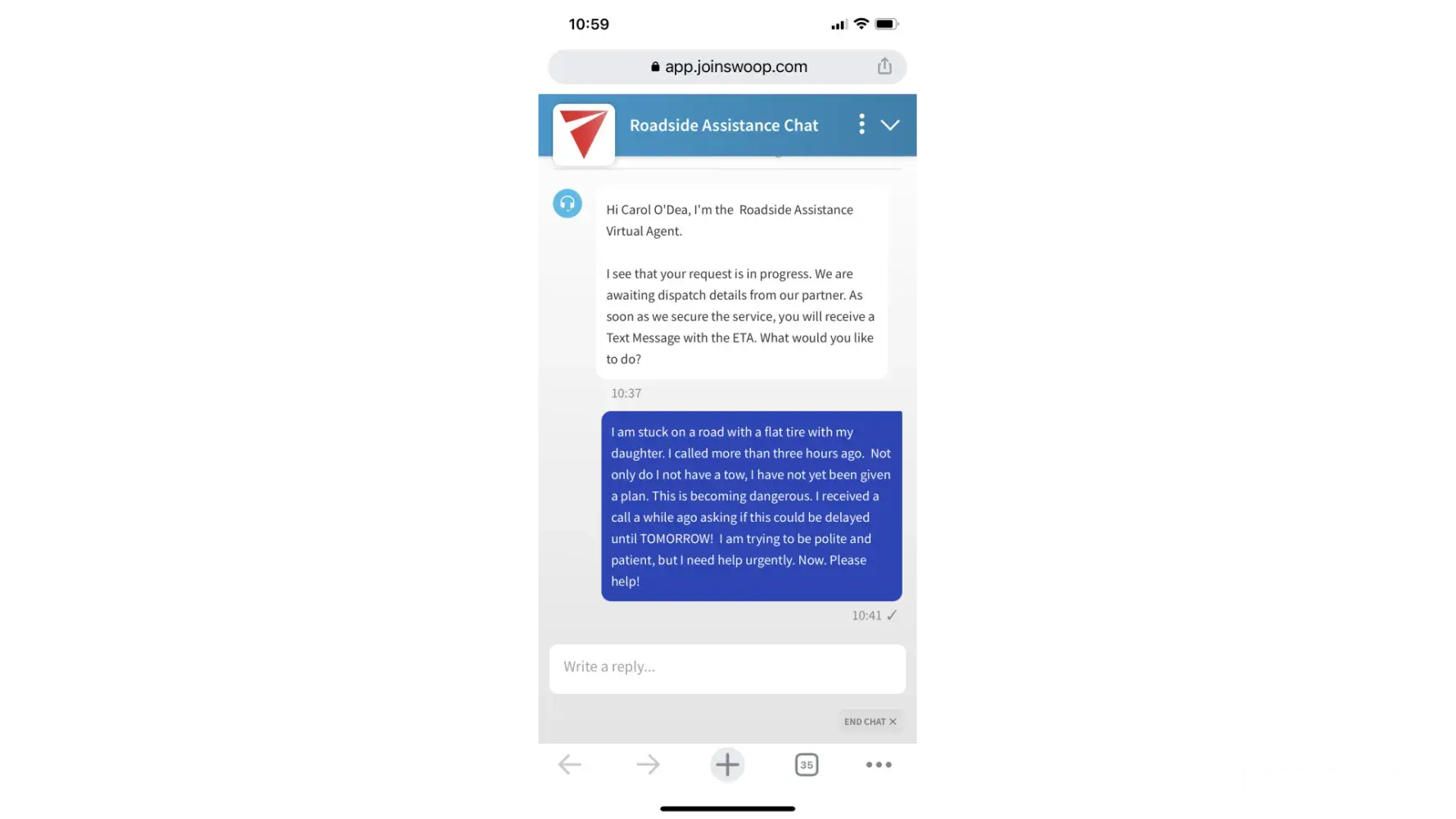 My wife and daughter had a flat around 7:30AM on a Sunday (7/24/2022) in Boston. They called roadside assistance. My wife and daughter were blocking traffic on a day that was becoming blisteringly hot. A polite gentleman said he would connect them with a local tow company and send a link to provide information/ETA. They were told had to stay with the car. The link arrived 15 minutes later, as promised. When my wife clicked on the link, at first it said "connecting" and then after endless hourglasses said "cancelled." Dead end. No follow-yup. When my wife called back to explain what happened, a very apologetic woman at a call center apologized profusely and reassuringly. She said she would "make it her personal duty to get this resolved right away." She promised to "call back in 5-10 minutes." When a half hour passed and no return call, my wife called a third time. This time she was told that there is an "open ticket," but no tow companies available until 1:00PM at the earliest (which would leave them stranded for four hours). She committed that Audi "would keep trying," promised to call back if Audi confirmed a tow at 1:00 or sooner. The next call from Audi, which arrived three hours after the original request for help, asked if my wife would be OK with a tow THE NEXT DAY! Since the phone tag with the call center was unproductive, we tried the "Roadside Assistance Chat." We pleaded with an agent named "Belle" for help. She asked for our contact information. Then, she went silent and never responded again., We ultimately resorted to self-help. Thanks to an incredibly kind and helpful gentleman named Steven at Audi Brookline (thank goodness there are people like him), we obtained the names of local towing companies. We arranged for the tow ourselves, for $200 plus a $70 tip. We relied on Audi's promise of 24/7 Roadside Assistance. What a mistake. The whole ordeal was traumatizing, frustrating and useless. I feel as though we are owed an apology. The service was a complete failure at a critical time of need. I cannot express how disappointed we are. This is our second Audi, but this experience was so bad we will hesitate to recommend or buy new Audis in the future.