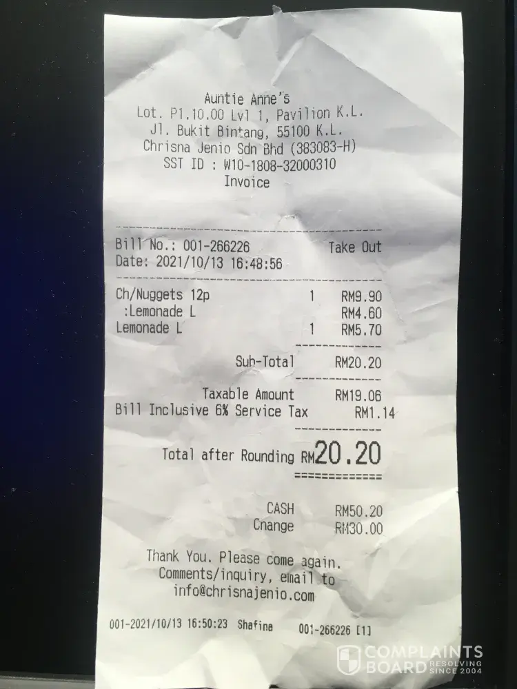- While Auntie Anne's has a high level of trust, our investigation has revealed that the company's complaint resolution process is inadequate and ineffective. As a result, only 14% of 28 complaints are resolved. The support team may have poor customer service skills, lack of training, or not be well-equipped to handle customer complaints.