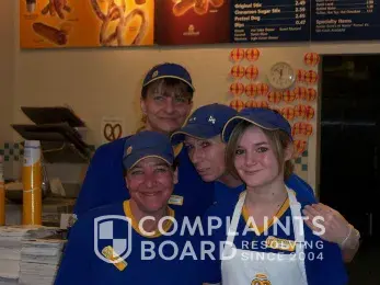 I am happy to say that the former employee from Auntie Annes has been let go ...again, the DM who runs the store was on holiday when she was rehired and when he got back yesterday and was told by another employee he then contacted her and told her that her services were no longer required and also that the Corp Office will make sure she is never to be rehired again...now I'm content.