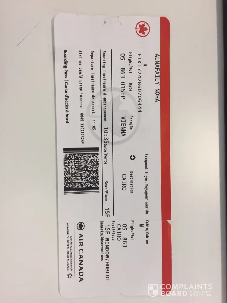 Flight no. OS 864 (Cairo-Vienna)