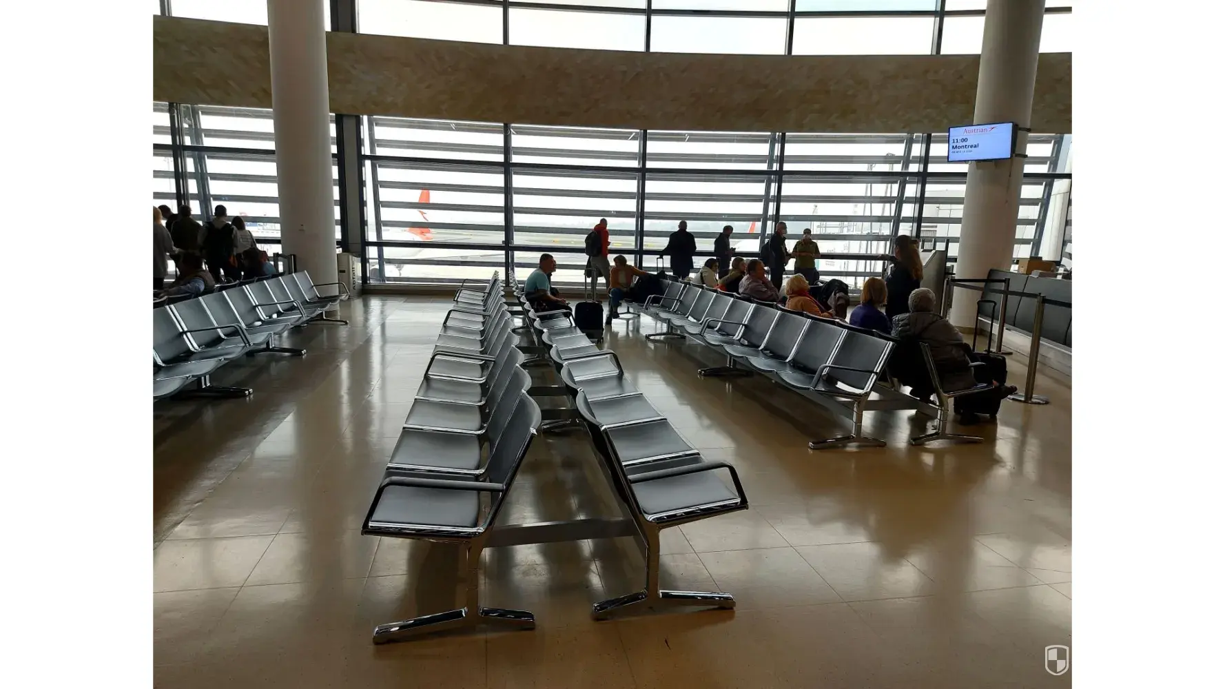I flew back to Montreal last Saturday with OS. I could not believe my eyes and ears when we were told all the seats at our gate were reserved for business class passengers only and that we had to stand or find other seats elsewhere. Over 75% of the seats remained empty until boarding. No other flights in this area had the section cordoned off. People were pretty upset and the poor agent got an ear full. It seems to apply only for the Montreal flight (Tel Aviv flt was next over and people could sit). I friend came back on the same flight yesterday and had the same experience (she is over 80 but young looking). For me that is an unacceptable practice and I would really like to know why just for the flight to YUL?