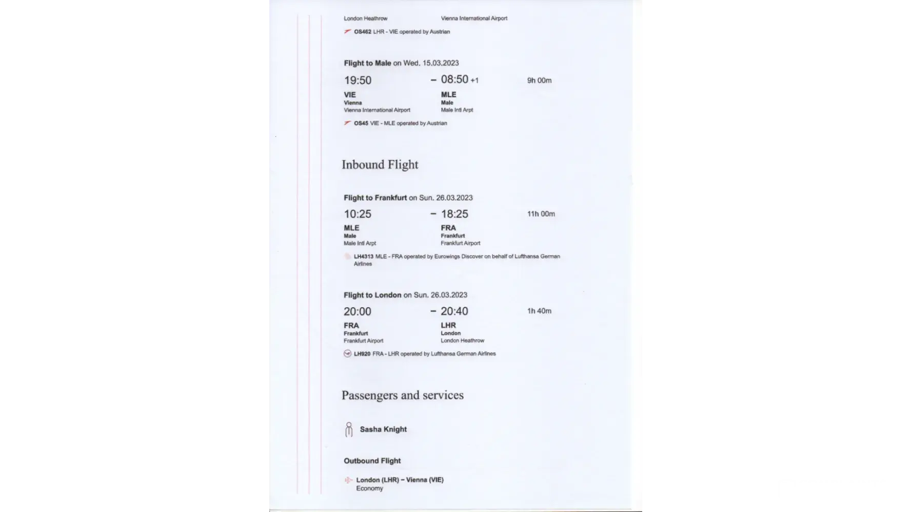 We travelled with Austrian Airlines on the 19/07/2022 from London Heathrow to Larnaca Cyprus via Vienna. Flight numbers:
