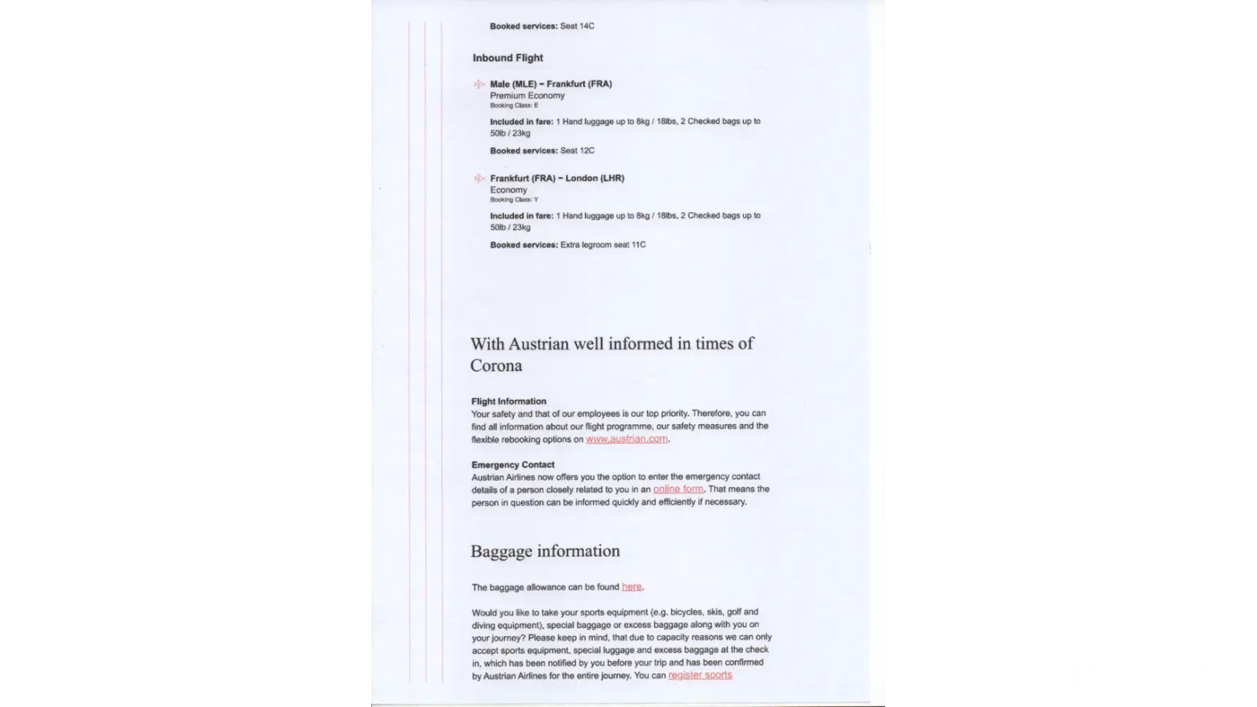 I have made a reservation on AUSTRIAN TICKETS for the following flight: