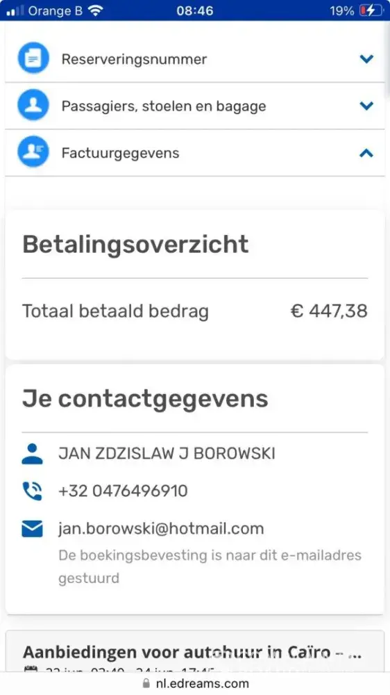 The first alternative Austrian Airlines flight to Cairo was already fully booked, so I received a seat on the Egypt Air flight MS798, departing on June 22, 2024, at 15:30.