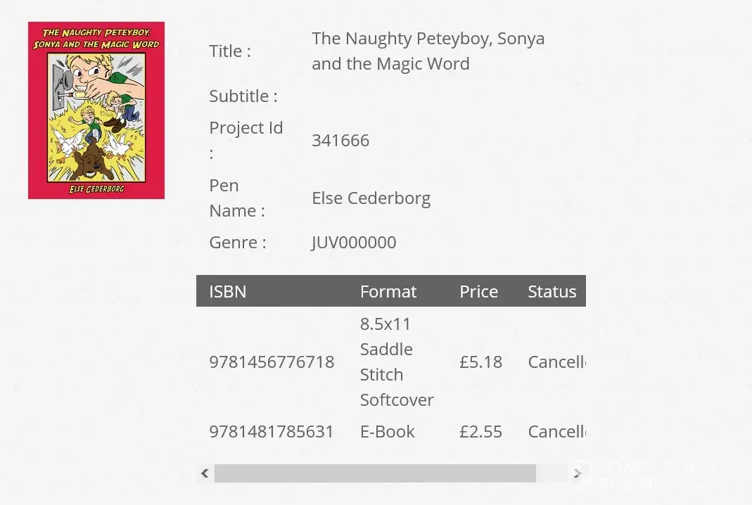 A month ago I wrote a complaint about royalties not being paid by AuthorHouse, but there were other concerns as well, some of them very grave. Rigth now my main focus is on how one of my children's books, namely "The Naughty Peteyboy, Sonya and the Magic Word" (2011), literally was kidnapped and held at a ransom of £299 before it, without my consent or even my knowledge, was "cancelled" or as I call it "murdered".