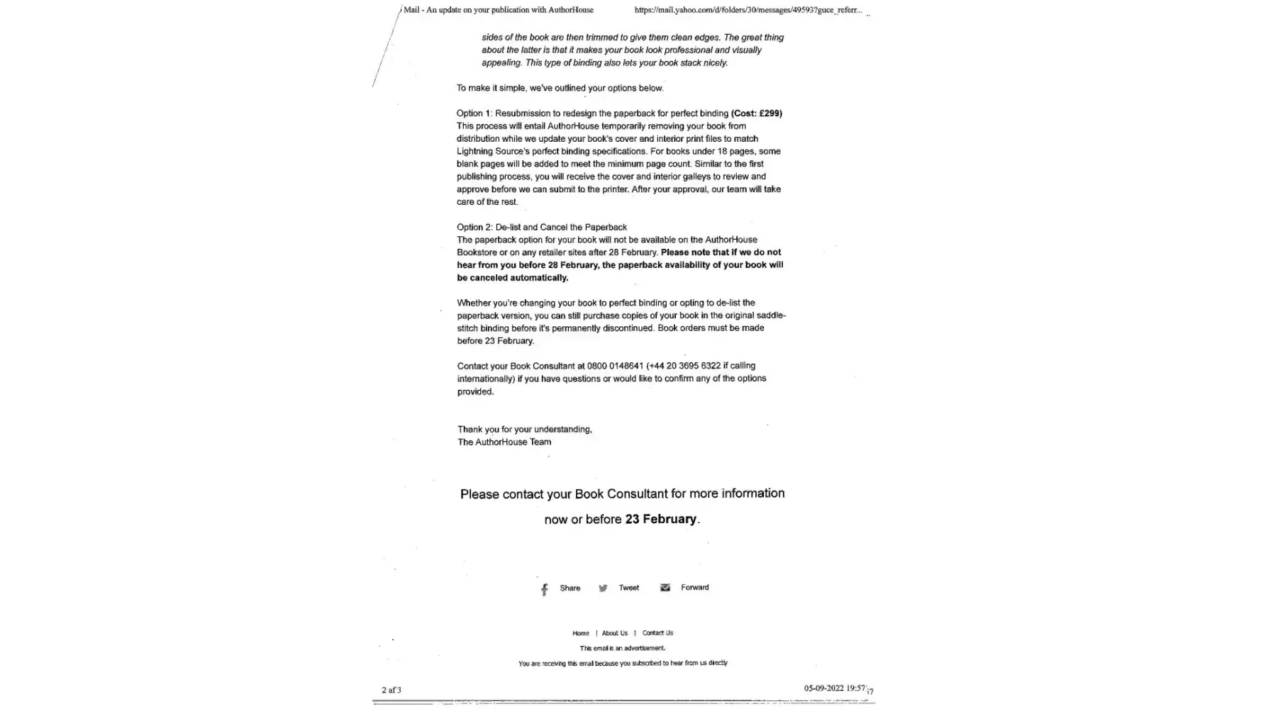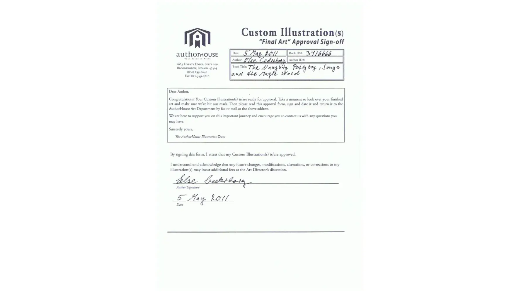 Desired outcome: contact from Authorhouse