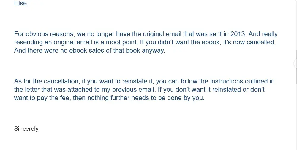 Desired outcome: Yje LEAST they can do is republishing my book at no costs for me