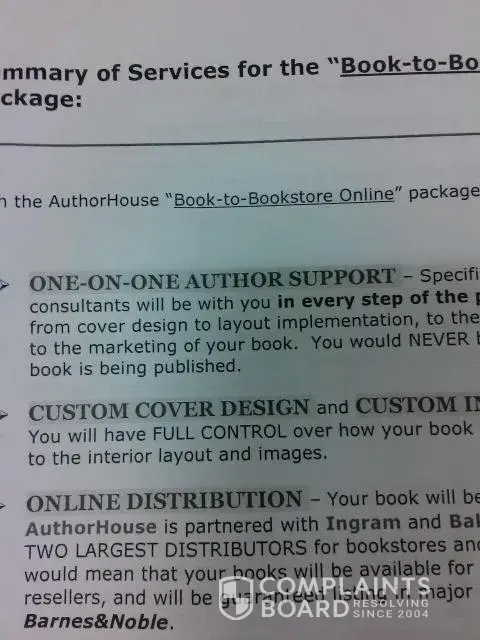 I have paid for a pinacle package 1 year ago that I was told would include 50 colored photos at no extra cost. Not true I find out today. I get 10 black and white at a cost of 5.00 each. And I had also found out that I have to pay an additional 1100.00 to 1500.00 for advertising. I am going with Exlibrus who offers me a great deal, a half price package with no additional cost for advertising and unlimited black and white photos. and the royalties are 50%. Well my main complaint is that I have not signed a contract with authorhouse. I have only a book id number and an author id number. I was told prior I would get a refund if I chose not to publish, rather changed my mind which I did. Now my newly appointed consultant Branden Drake tells me I receive no money back. I reminded him that his company has done NO WORK ON MY BOOK. He then told me to discuss the matter with my original consultant who is Mr. Gerry Shyrock. I left him a message and I hope that I can write him a great review. If not I will hound them and contact the better business beareau in Indiana.