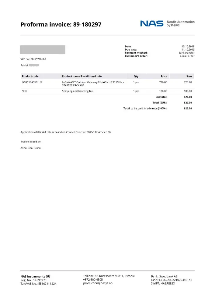Read full complaintNAS Nordic Automation Systems - IX1011C#SS01US (Lorawan gateway)