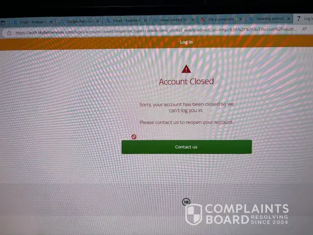 Hello, I hope you are well. I recently closed our online betting account with Sky Bet. After myself and my friends tried out several sites we finally agreed to settle on a single vendor whose site functionality suited us best. I now find that I have been blocked/banned from my ITV7 registration. I assume that this is because I closed our Sky Bet account;...