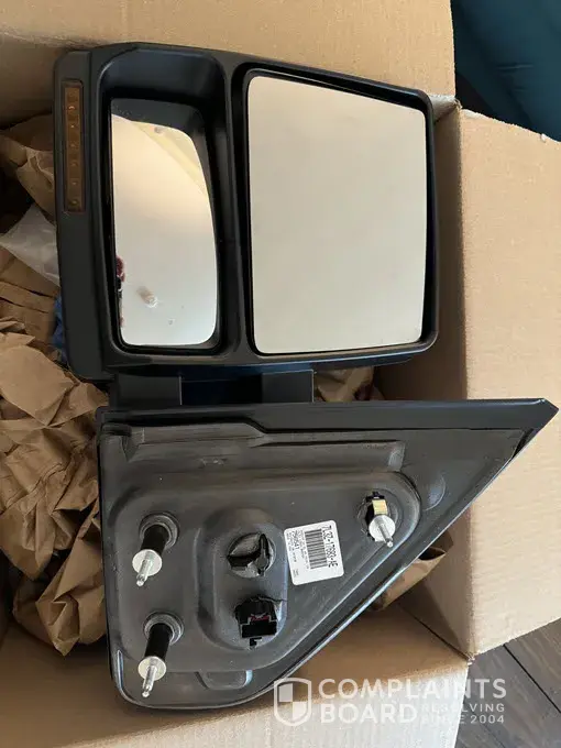 I purchased a part (7L3Z-17683-AE) for my vehicle (2011 Ford F150) and it arrived broken. The part ordered is a driver side tow mirror. The glass in the mirror does not stay affixed to the housing upon receipt of the item. With a piece of glass that does not stay attached, the item is defective and unusable. FordPartsGiant also carries the replacement...