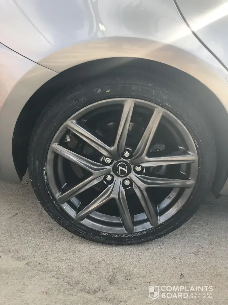 I drive a Lexus IS 250 and had a flat tire when I left work monday @ 7 PM. I called first thing tuesday morning at 8 AM and told them what happend. When I purchesed the car I purchesed wheel and tire warrenty just in case I had a flat it would be covered. Upon taking my car in for a simple tire change I am told they are going to have to order my tire and that it was gonna be a 40-50$ charge for the tire since the warranty only covers 300$. I was not told any of this when I bought the car. When I bought the car I was told they would replace my tire at no cost so after hearing that I just told them thats fine. I was told they ordered my tire and it would be in tomorrow so I decided to leave my car there. Once I told him I was gonna leave my car there I went ahead and asked him to have my oil changed and my car detailed and he said okay no problem. My wife came and picked me up and dropped me off at home since it was day off and she went back to work. The next day (Wednesday) I didnt get a phone call. Thursday I waited all day for a phone call that never came so I decided to call @ 5 PM to see what is going on and they tell me the tire hasnt arrived and that it will arrive tomorrow (Friday). Friday came and still no call all day so I decided to call again @ 5PM and I am told that the tire came in some time yesterday after I had called and they are working on replacing the tire and it should be done by 6:30 PM for me to come pick it up. I was happy at the moment until I asked him if they had changed my oil and I get the reply no I forgot to put that on the job order. Annoyed that what I asked to have done didnt get done but also my car has been there for 4 days and I am fixing to go back to work. However he said he would have it taken care of and I can come pick up my car today (Friday). My wife get out of work at comes to pick me up to go get my car. Arriving to the dealership I walk inside and the man tells me my car is ready and hands me the keys. I told him I wanted to go look at it before I drive off and I get the reply WHY? ITS JUST A TIRE CHANGE... I walk out to my car and this is what I see (see attached photo of chipped rim). I am so mad! Not only were they not going to tell me but they were going to let me drive off like that. Frustrated I walk to my wife in her car and tell her to come look at this. She sees my car and knows im pissed while she looks at it I walk back inside to call the serive advisor to come out and look at this. He looks at it and says im not sure what the car looked like when it arrived because I didnt leave the car with him. Pissed off I told him my rim did not look like this you can tell it just happend. I told him I wanted to speak to a Manager and the only person still there at the time was the sales manager whom was a very nice person I asked the service advisor where he is and he replied hes inside. I was even more annoyed due to the guys poor communication skills I strongly reply CAN YOU TAKE ME TO HIM? IDK WHO HE IS OR WHAT HE LOOKS LIKE?!?! The man walks me inside to the sales manager and I ask him if I can speak with him outside obliged he follows and I show him my car. He looks at it as asks if it was like this before I brought it in and I replied NO so he asks so this was done as a result of the tire change? and I said yes sir. He tells me he is going to call the general manager and tell her what happend. Finally im getting some where. He walks back and tells me she will call me in the morning and will come look at it. I told him thank you and I will be expecting a call. (Saturday) the general manager called me and told me she would give me a loaner car to drive which was good since I was going back to work. She explains that the dealership didnt have the right equipment to change the tire and that they had to send it out to get put on. I asked who messed up my tire and she couldnt give me a direct answer. However she told me that the 40-50$ fee was incorrectly told to me and that that fee will never have to be paid which was nice to know. The rim now has to be sent out to a company who sand blasts and paints to paint the rim to match the other ones. I was doubtfull that that paint that lexus puts on its rims could even be re created without just going as far as buying a new rim but whatever she told me this is what they were gonna do and they didnt know how long it was gonna take. (Tues/Wed/Thur/Fri/Sat/Sun/Mon/Tue/Wed/Thur/Fri/Sat/Sun/Monday) passes which is a whole 2 weeks of me not having my car and this problem has persisted. I am so annoyed and dissapointed at this point I dont even know what to do. I call them monday and ask whats going on whats taking so long. I get told that my car should be arriving today. yayyy me right? The man said he would call me when it gets there. I get a call @ 4 PM and am told it arrived so I leave work and head over there in the loaner vehical. I get there and look at it which I have attached photos of the paint job along with another rim for what it should look like. The painted rim is much darker and not as reflective as the original rim. Once I looked at the difference I could see a spot on my front rim on the same side as the one which they replaced the tire and low and behold the paint place painted a spot on my rim to test out the color. omg im so pissed a simple tire change has messed up my rims and now I am being told they are going to repaint both rims... I need help I dont even know what to do? Please some one read this and help me!