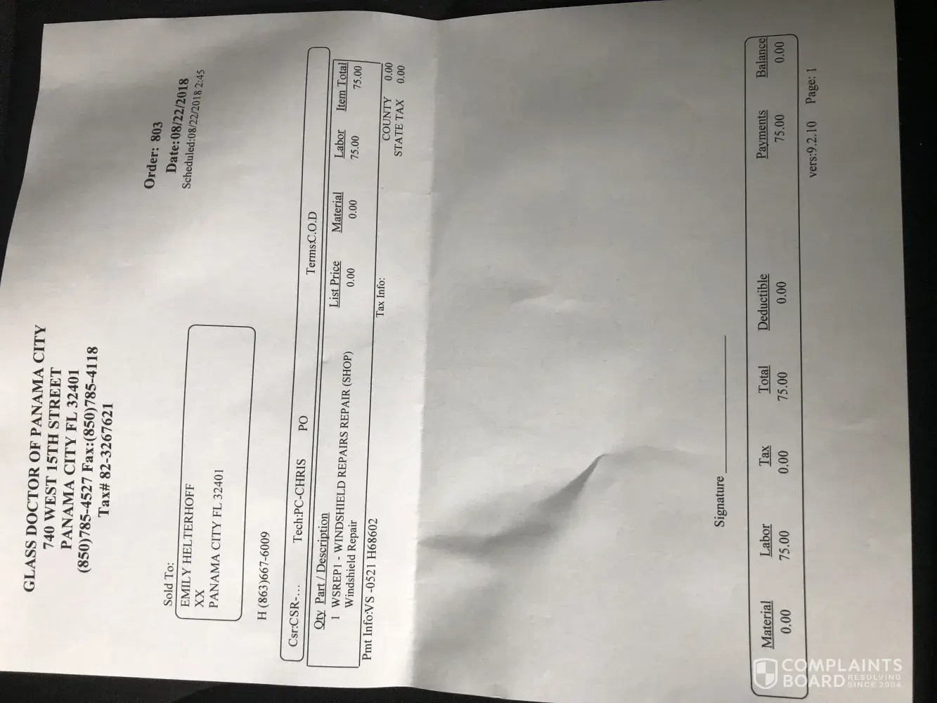 My name is Emily Helterhoff. I purchased a 2015 Jeep Wrangler Unlimited Sport from Autonation Hyundai on August 17th. This is now the second complaint I am making, because after the first complaint I was promised a refund for the battery that I had to replace that was $200. When I purchased the vehicle, there was a chip in the windshield that was promised to be payed for to fix as well. That was documented in the paper work. Robert Laster contacted me after my first complaint and asked that I send the receipt for the battery and the glass repair, which I did. On 8/22/18 I sent him the battery receipt, and on 8/28/18 I sent him the glass repair receipt.