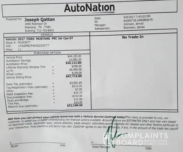 Due to Houston’s disaster Hurricane Harvey the insured 2017 Mustang GT-Premium is documented and finalized as a total loss along with my home. Hence, as I rebuild my life, On Thursday Sept. 7, I began dealing with Auto Nation to purchase another 2017 Mustang Premium based on the web advertisement (36, 392). (Images attached)