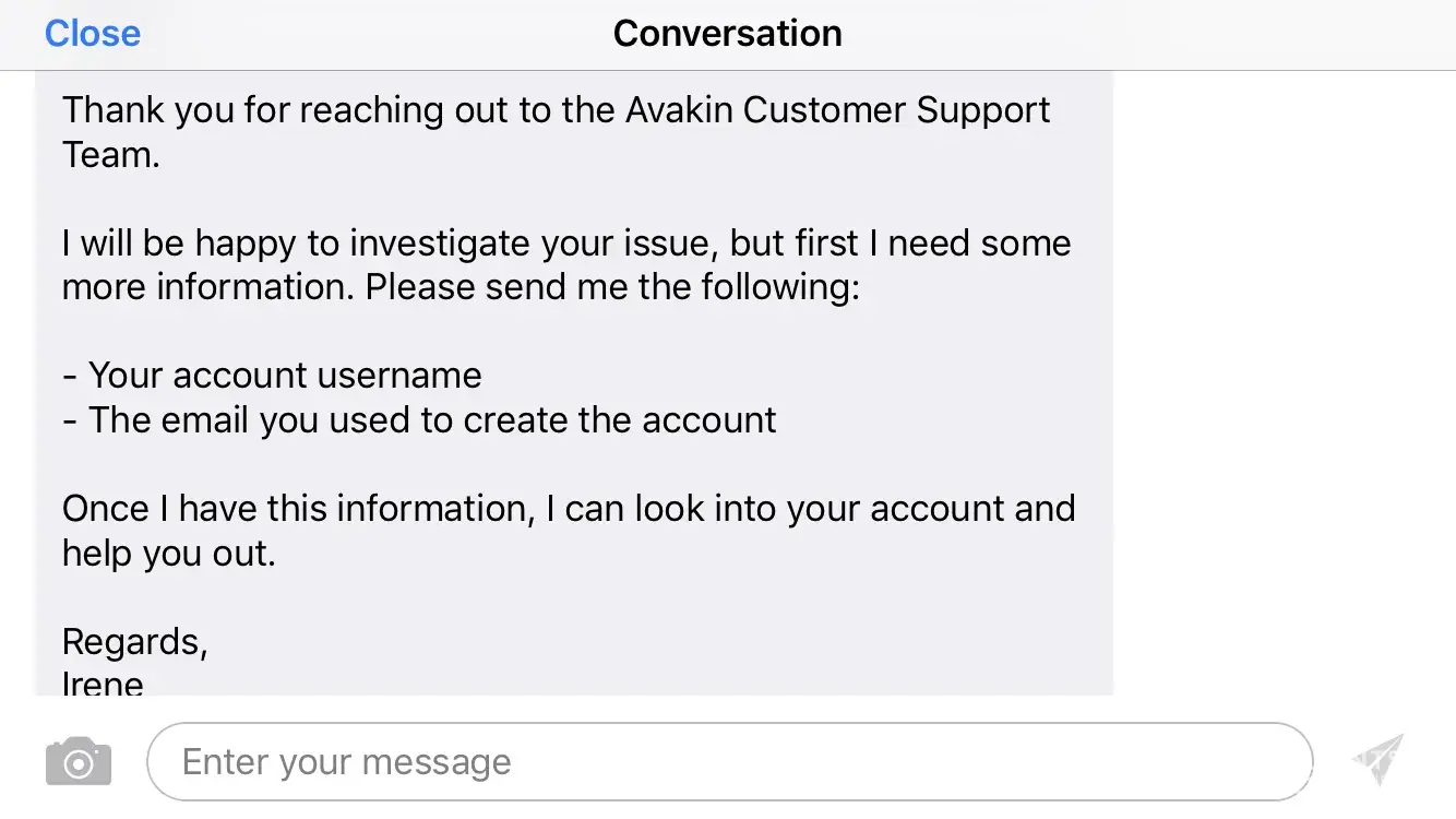 ### Do not reply below this line ### Avakin Customer Support June 11, 2018, 09:11 +0100 Hello,
