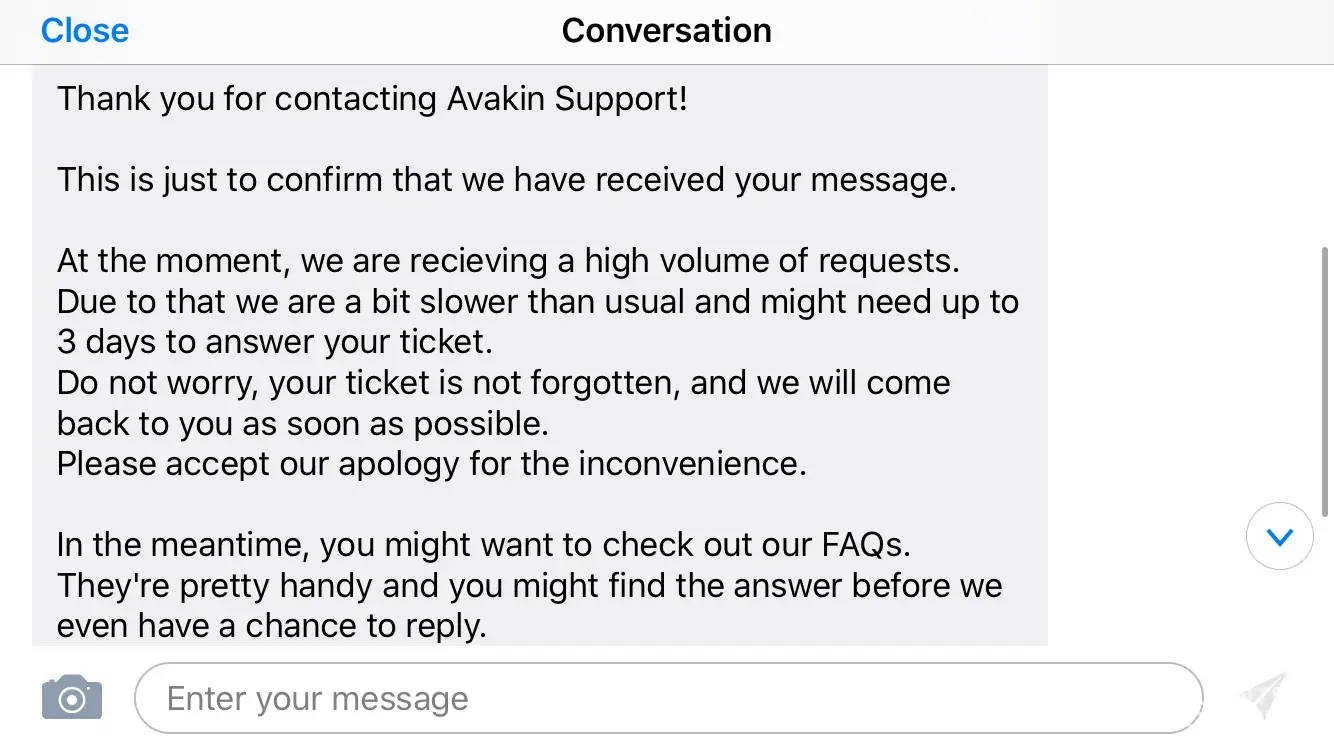 It took Avakin about 4 days to answer me and it was "Anton" who responded to my Email.