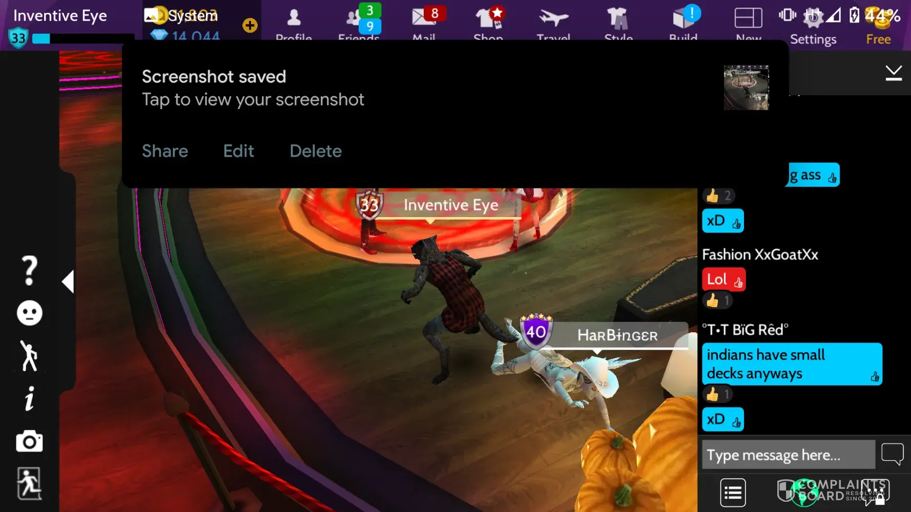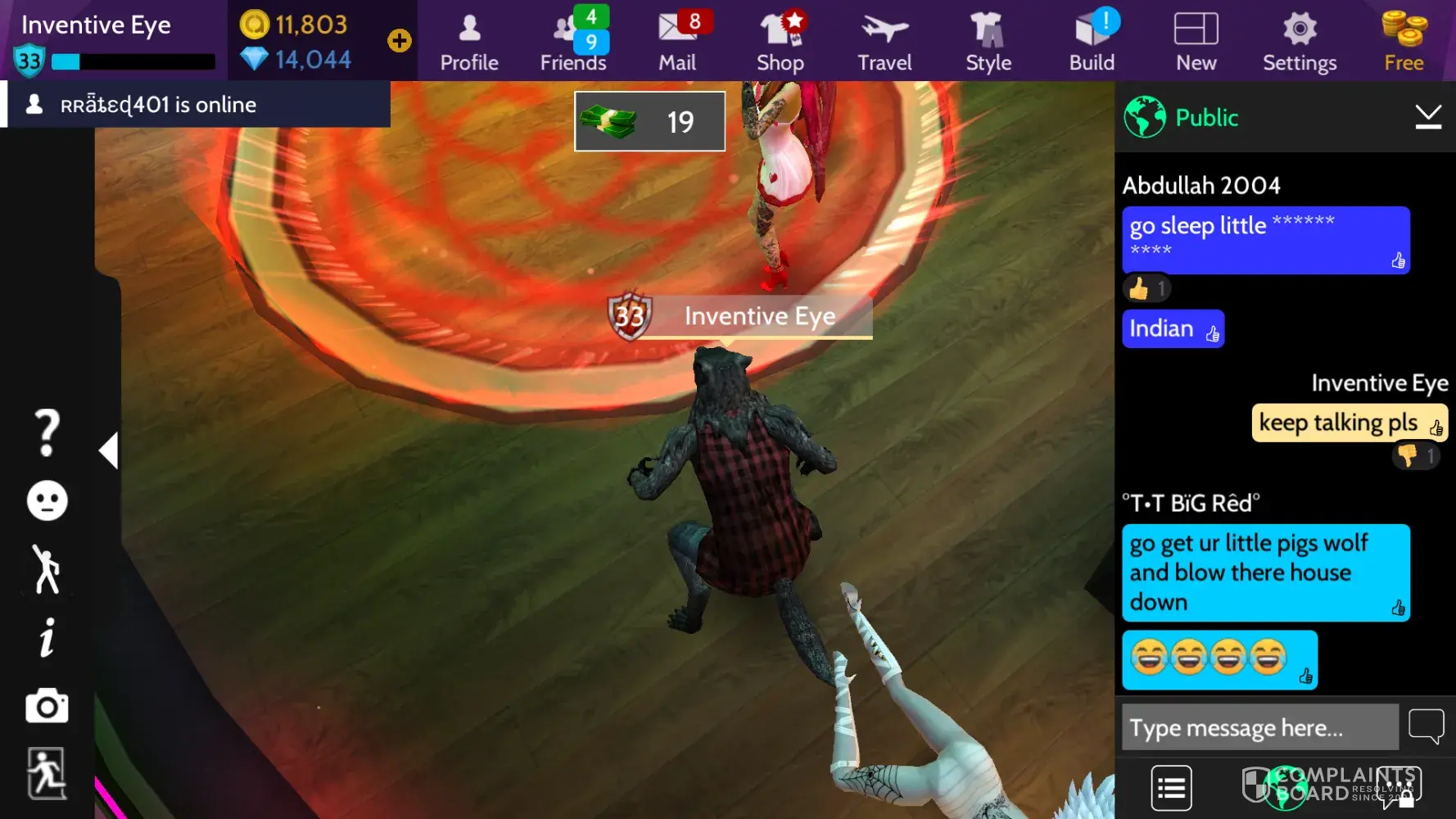 There were racist attacks by a group because I was an Indian dressed as a wolf. The attached screenshots clearly explain the purported attacks. I've heard rumours of the game being lax on the perpetrators of abusive activity, since they spend huge sums at the store. I hope money is not an excuse to go around abusing people on the game