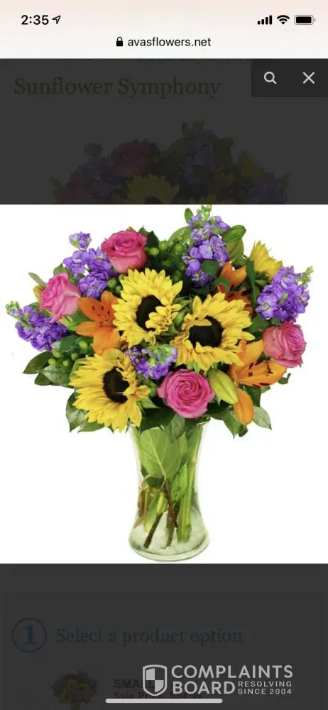 I ordered flowers online via Ava's Flowers. I paid $55 for the Medium bouquet and chose it based on the image. The image shows numerous flowers - over 17 sunflowers, roses, etc. When the bouquet was delivered to my friend for her birthday, it had 7 flowers. This isn't even HALF the number of flowers shown in the image. I filled out the online form for Ava's complaining about the number of flowers. The option provided was to have the bouquet picked up an redone; I chose this option. I received an email back stating that the bouquet delivered met their standards and they would not be redoing it. I'm not sure how 17 + flowers is the same as 7 flowers. You can see in the two images that the only thing in common are the types of flowers, not the quantity.