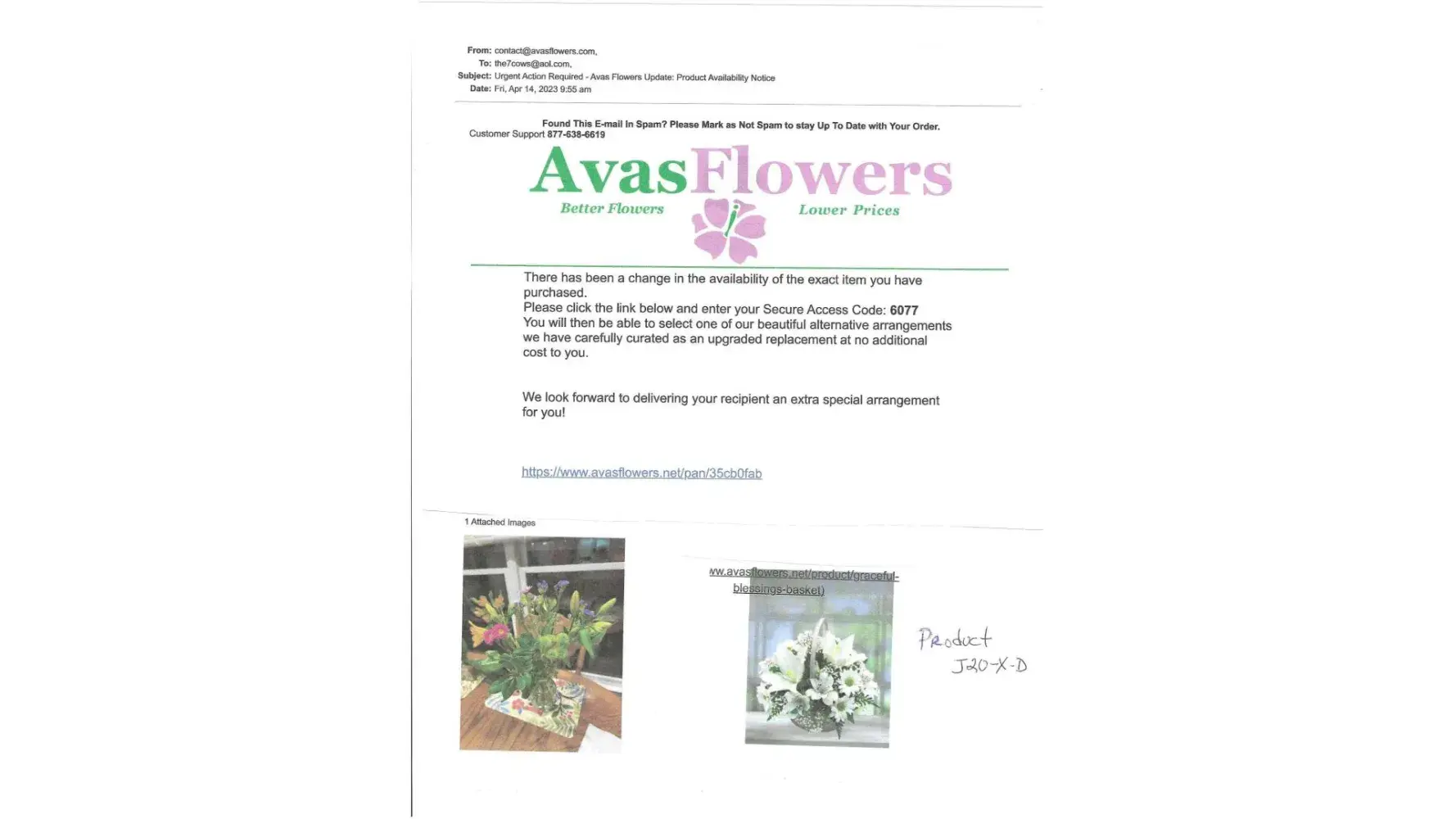 I placed an order on 5/11/23 at 9:15am from Ava's Flowers online - says on the site when I pulled it up delivery in New Braunfels (doesn't say shipping - don't want that) - I needed delivery from in town. I ordered a Blooming Azaela plant $49.99 and a lighthearted moments mini rose plant $42.99. I paid a total of $131.97 (they charge some service fee of $28.95 (don't even know what that is for - thought maybe it would be delivering from another florist in town as I've done this before from another place). I filled out the special request part for what sentiment needed to be on each card and then of course my name - so that my mom and grandmother know who they are from. Fast forward to 10:31am I start getting urgent texts about my order and I need check my email about my order or to call, I got two of those. I go to my email and see that my Azaela all of a sudden magically isn't available - so it gives me some choices - I chose a peace lily - but it showed that the mini rose plant was still good and the order still showing to deliver Saturday 5/12/23. Fast forward again to 2:20pm and I'm getting the urgent update texts yet again on the delivery of my order and it gives me a number of [protected] to call. I dial the number and it takes an act of God to get through to anyone and then when they FINALLY do answer they are so hard to understand and sound like they are probably not in the US. Second red flag! Someone answers and tells me that my other order of the mini rose plant is now also mysteriously unavailable. I was upset and I started telling her this is ridiculous and asking what is going on. And she says that she will do a big upgrade since I can't get the mini rose plant - and she will upgrade me to the large complete floral arrangement with vase. I'm like okay, that will work - I wanted the nice rose plant, but a nice large complete floral arrangement will work. Then she says ok your order will be delivered on TUESDAY...WAIT WHAT? I told her absolutely not it won't be delivering on Tuesday, that my date was already set for tomorrow, Saturday 5/12/23 and that is the date it needs to be delivered. She repeats it again and I said no ma'am, that won't work. She puts me on hold for approx. 10 minutes and comes back and then mysteriously they will be delivering tomorrow, Saturday 5/12/23. I get an email last night that my order has SHIPPED..wait what? I do not like shipped flowers, I was under the understanding they were being delivered locally. I mean good grief. Shows delivering by UPS today by noon. Got there at 11:51am - okay perfect. I knew my mom would be texting me, and I didn't hear anything. So I texted her did she receive a package. And she says yes, but I don't know who it's from (i'm not the only sibling) Both cards say happy mother's day, that's it...NO SENTIMENT at all and NO NAME AS TO WHO THEY ARE FROM - LIKE WHAT? This is not my first rodeo ordering flowers - I HAVE NEVER HAD AN EXPERIENCE LIKE THIS - COMPLETE [censored]SHOW! Oh and the best part - these $131.97 worth of flowers look like the rejected flowers...plant isn't super, super bad, but still - not what I was expecting for the price! THE FLOWERS ARE AWFUL...has about 7 gerber daisies and this huge vase they put in there and that's it! Flowers look ridiculous in the vase... no greenery, no other flowers no babies breath, nothing! I got some sad looking daisies - DEFINITELY NOT AN UPGRADED LARGE COMPLETE FLORAL ARRANGEMENT. I am beyond hot! These were mother's day gifts for my mom and grandma and I am sooooooo embarrassed. $131.97 and this is what was delivered to my family! I want my money back! These people are scammers and shouldn't have a website! My mom sent me the pics of the flowers/plant and of the "cards" that were inside. I just really have no words left.