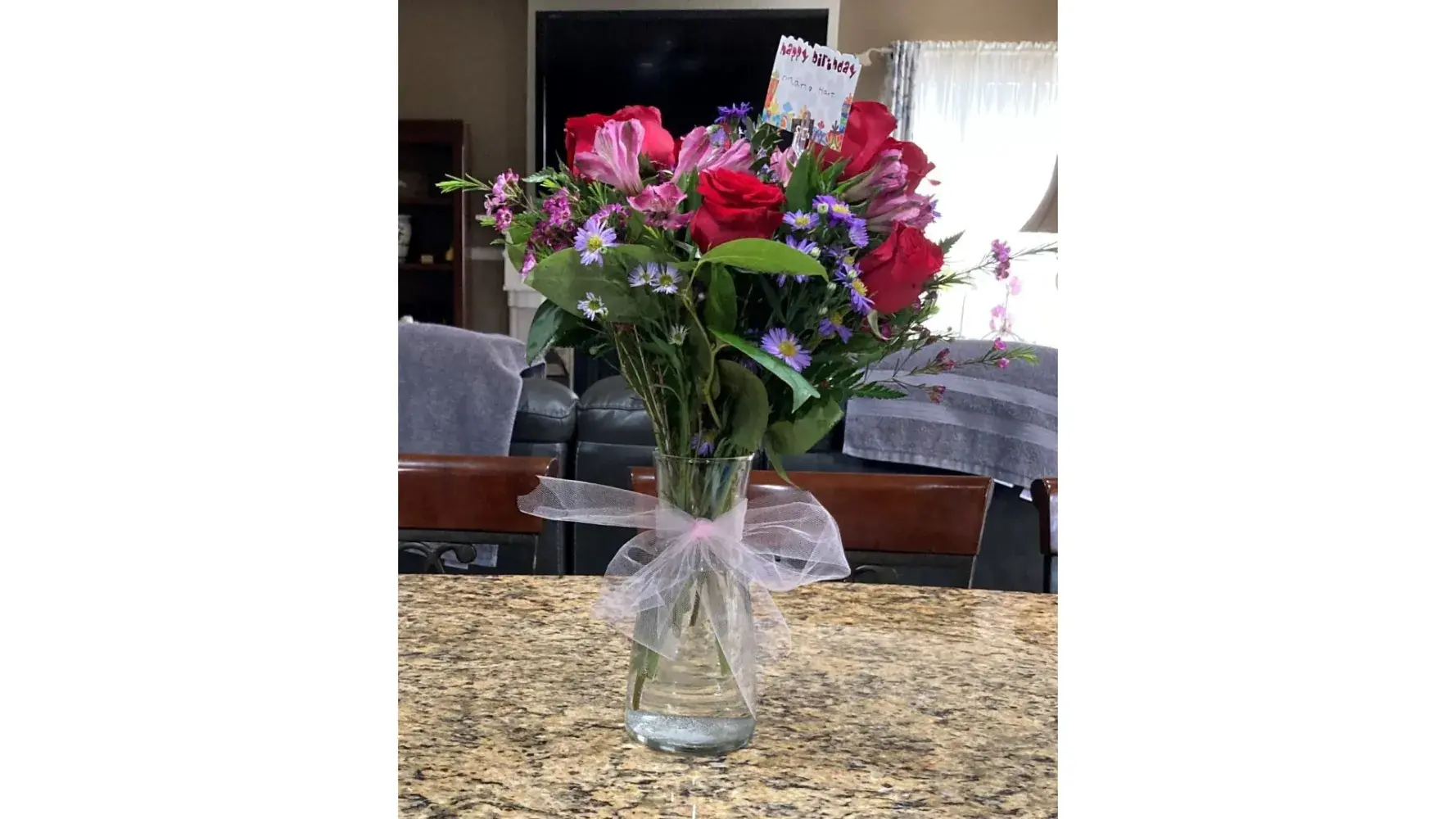 I ordered flowers for my mom's birthday from the shop in Palmdale California on 3/30/2022. I ordered the large Enchanted Kiss Bouquet and paid $124.47. As you can see from photos below, it's not what I ordered. I've been using this flower shop for years and its disappointing to see that this is the type of product that is now being delivered. Never again!