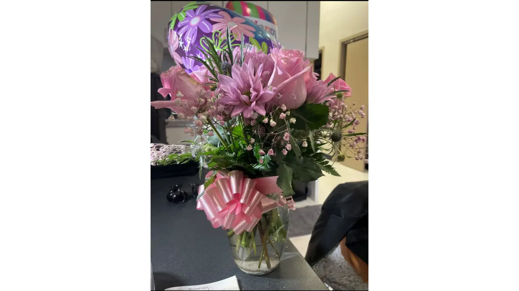 An order of flowers with a balloon