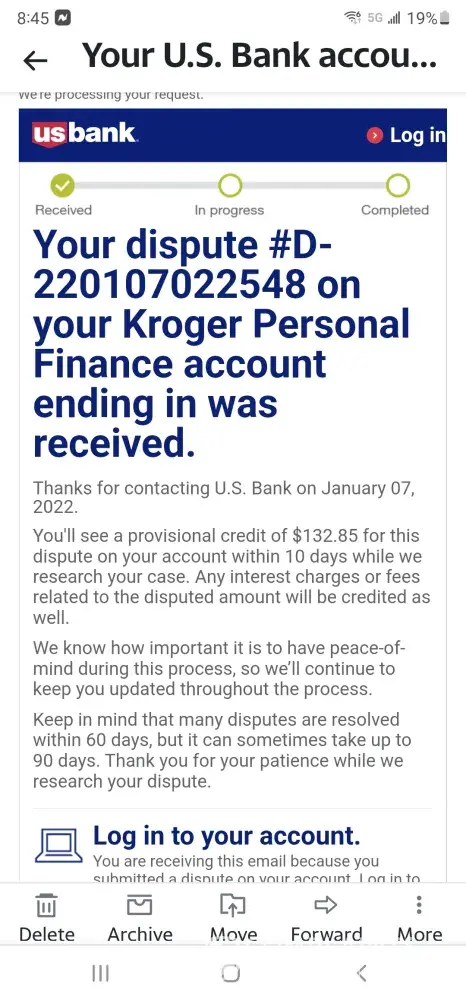 Desired outcome: Credit on my bill at Regions bank.for $92.99