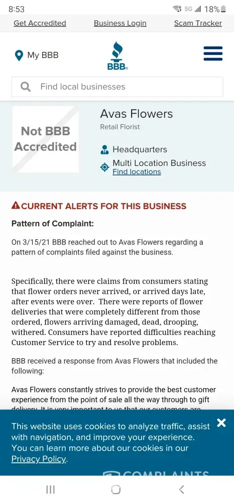 I called Avas Flowers and voiced my complaint to no avail. They couldn’t have cared any less about this situation. They offered a $10 Discount on $210 worth of flowers that never got delivered as of the time of the call (they checked on it).