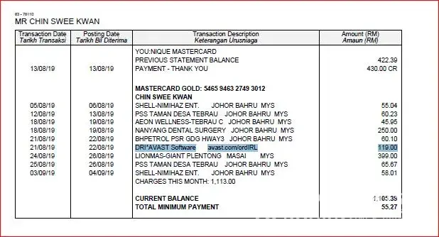 I was charged RM 119 for a DRI.AVAST SOFTWARE in September 2019, which I did not purchase Can a company can take money from me without my permission ? And I was wondering how did you get access to my account in the first place? Please refund my RM 119.