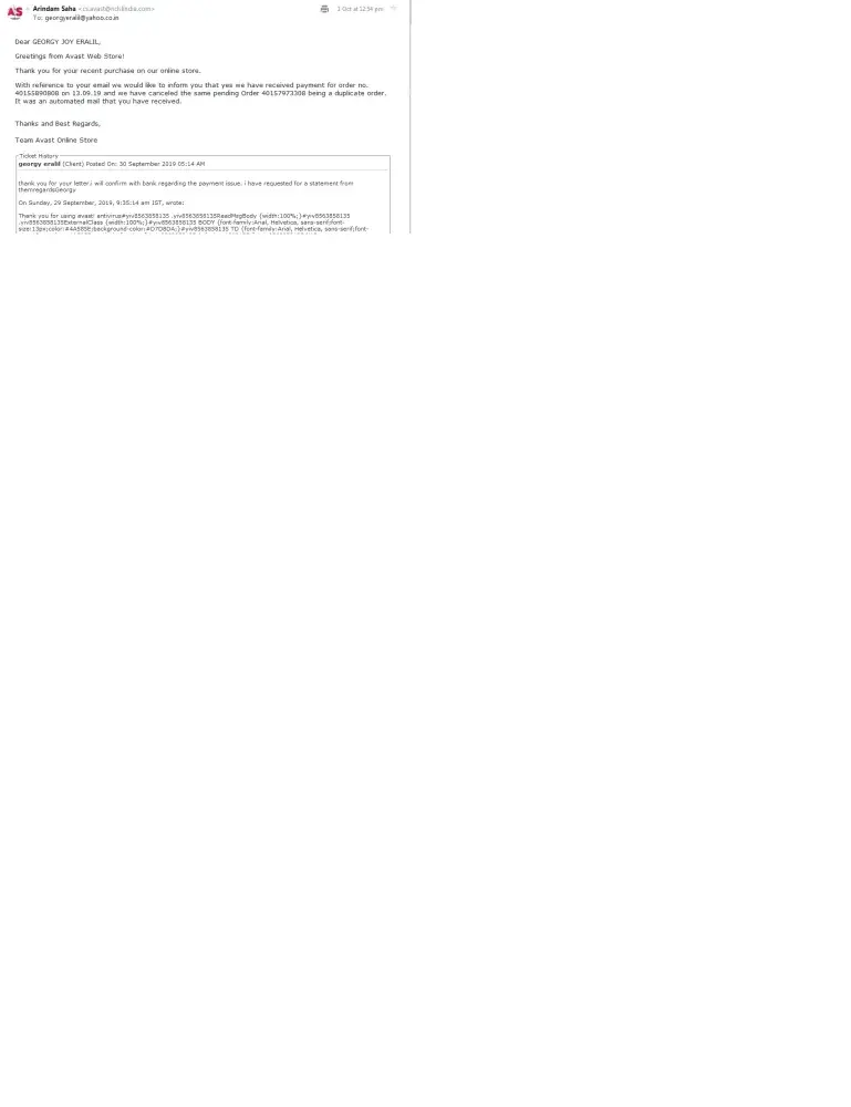 On 5th July 2019 at 13.07 I ve received a message from my bank stating that an amount of ₹1184 have been debited or charged towards the purchase of a spurious Dri.avast software which I do not even know what it is for and never ordered or even opted for that purchase..I request your notice of the money theft of your company and make arrangements for refunding the illegal amount of money debited from my account from your side.