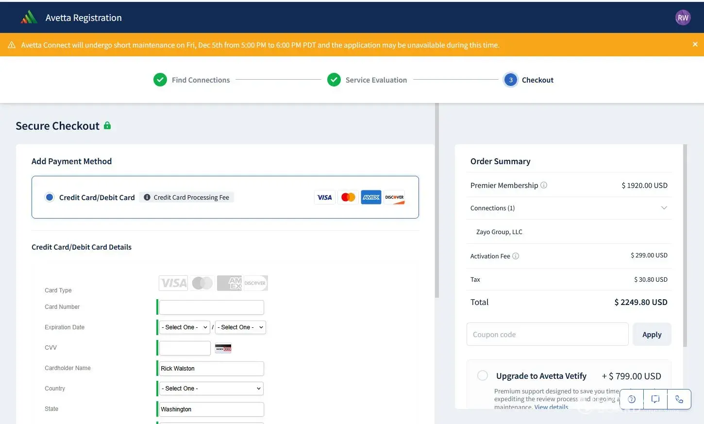 I have a client that requires that I am registered with Avetta. Recently I discovered that Avetta allowed a company to attach themselves to my profile without my knowledge or consent. Avetta then invoiced me $522.31 for this connection. Fortunately my credit card on file with Avetta was expired otherwise my credit card would have charged without my knowledge. After Avetta allowed this connection to my account, I started receiving notices from Avetta that I need to pay my ***. At my request, Avetta removed the unwanted connection and reversed the charges, however this took several hours of my time to correct for something that shouldn't have occurred in the first place. Again fortunately my credit card on file was expired. If a company wants to connect to my profile, Avetta should contact me for consent and let me decide if this is something i want or not.
