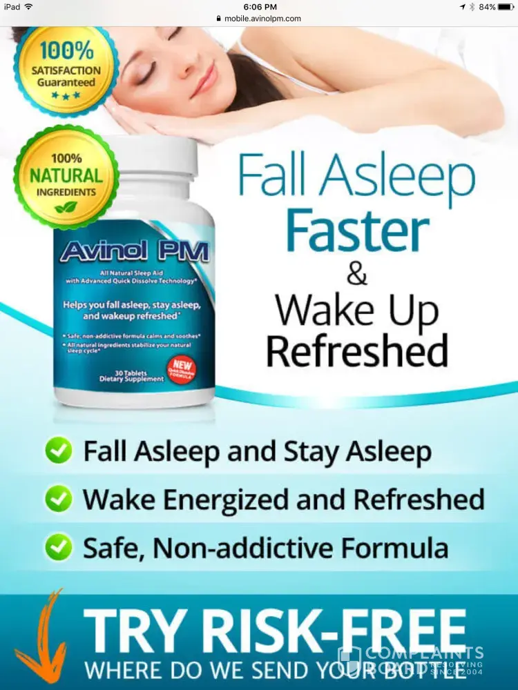 Avinol PM is ineffective. I have tried to cancel my monthly shipments but to no avail. I signed up for the $4.95 trial with the intention of canceling when it did not help me. I'm shocked I continue to be charged $84.90 month after month! This is insane! I am pleading for someone to step in and put a stop to the illegal, unethical practices of this company on behalf of innocent victims like myself and so many others.