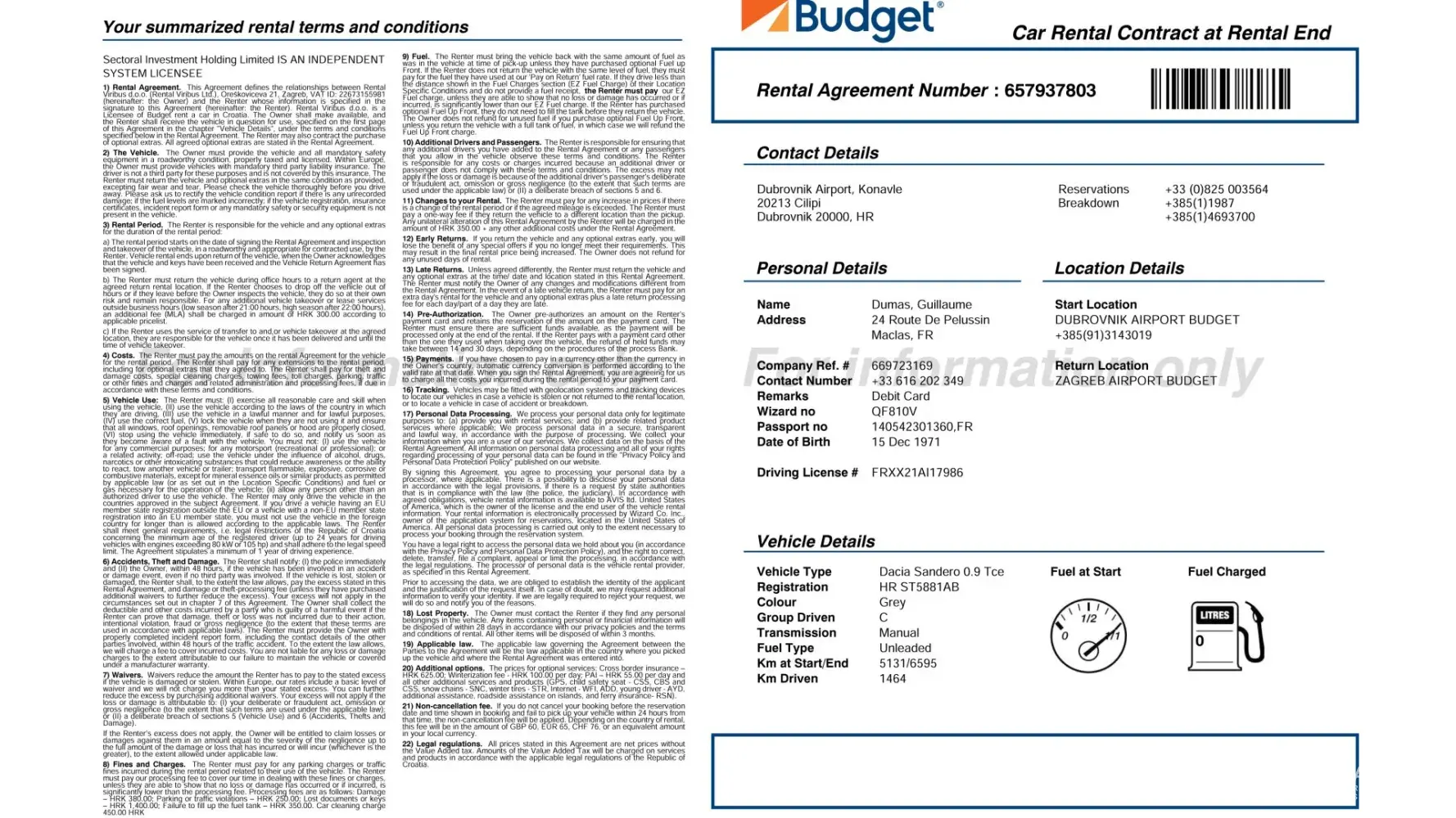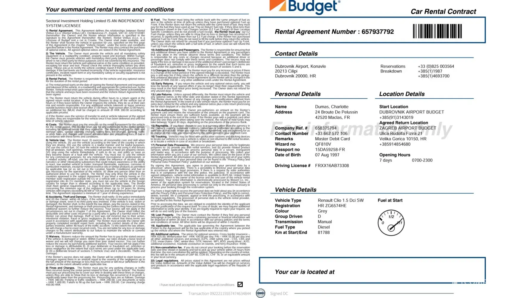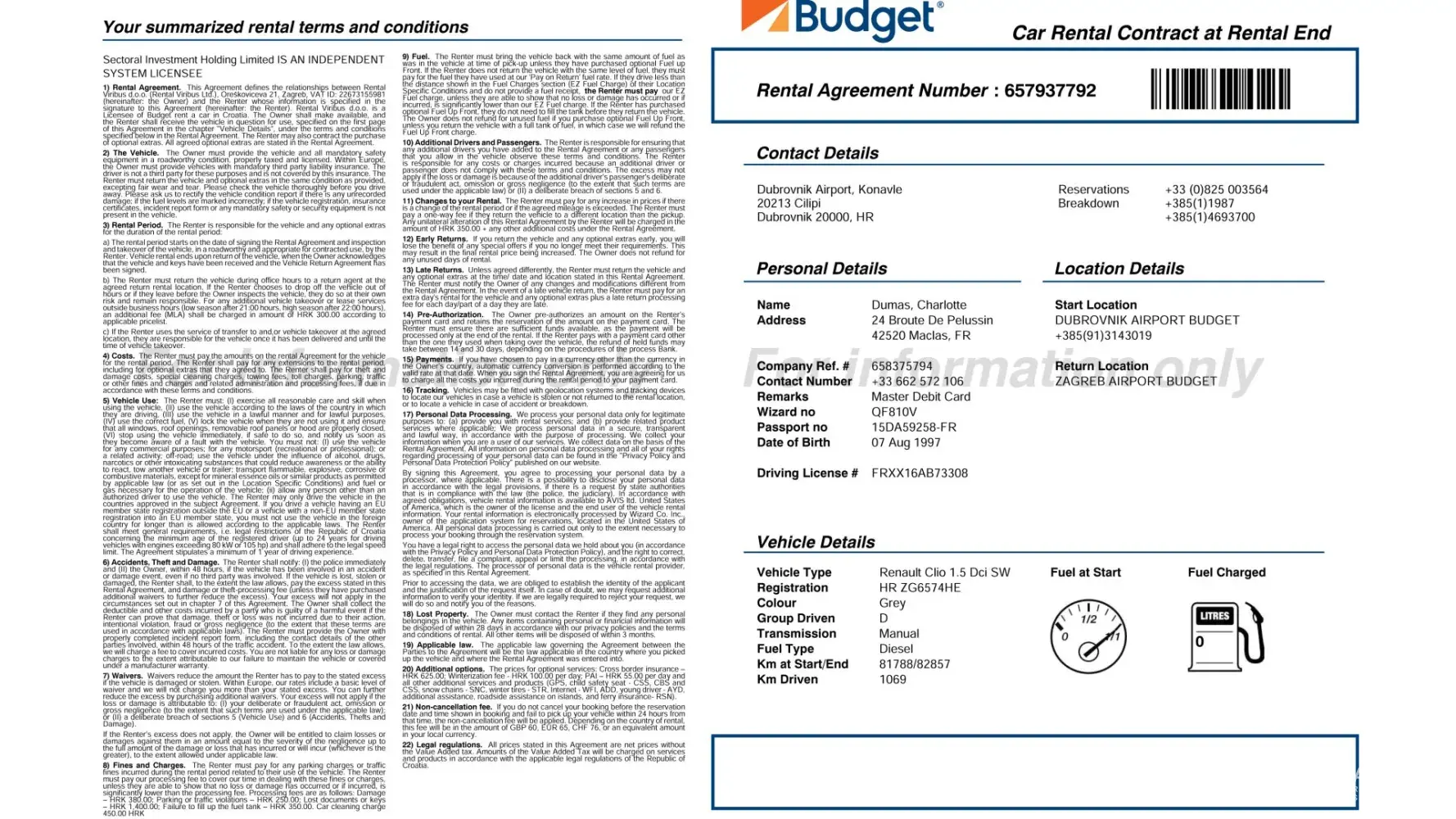 The car was in a very poor state of cleanliness, and I was not given any contract just a piece of carboard. This was despite my asking for a copy of my contract.