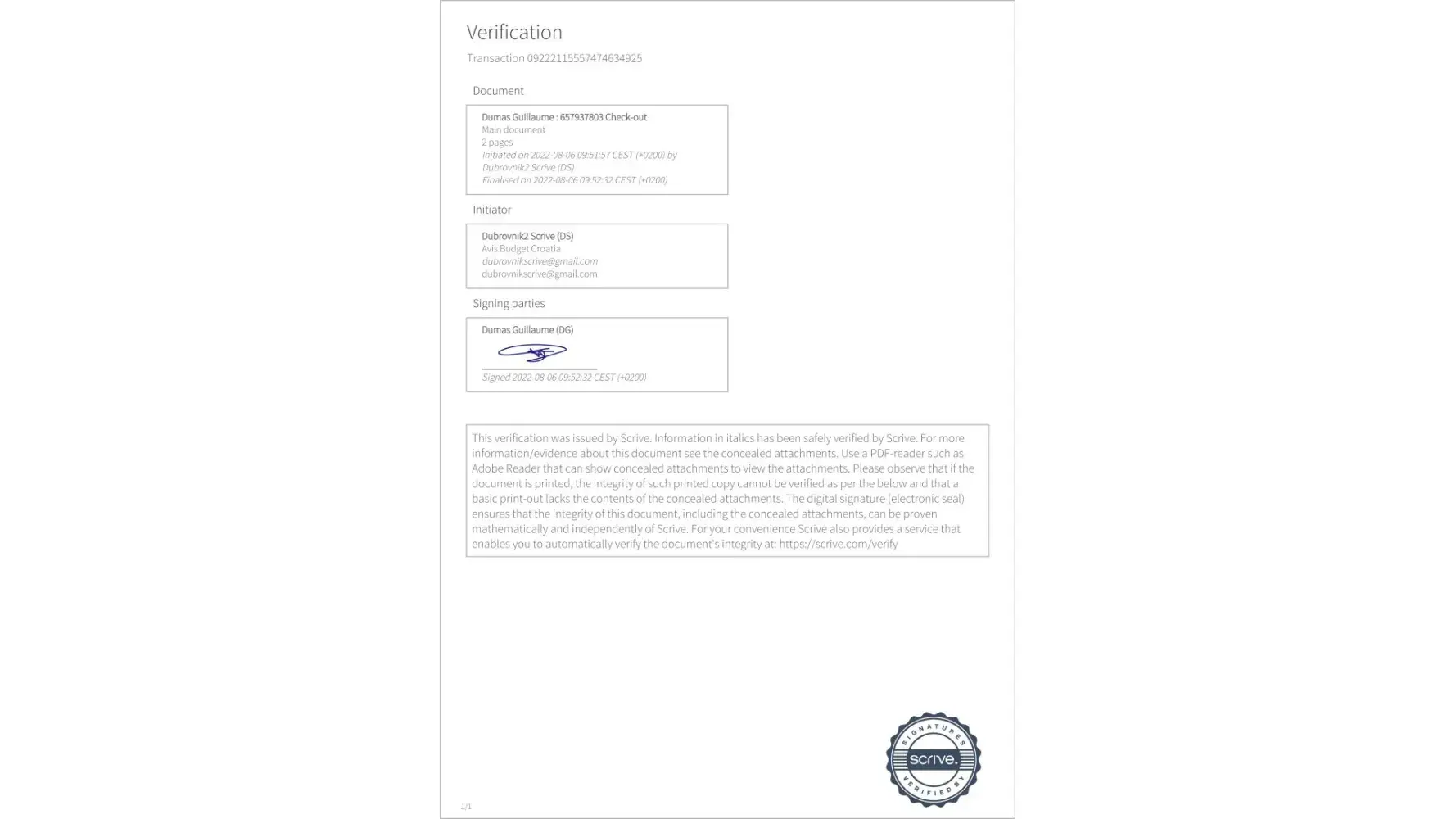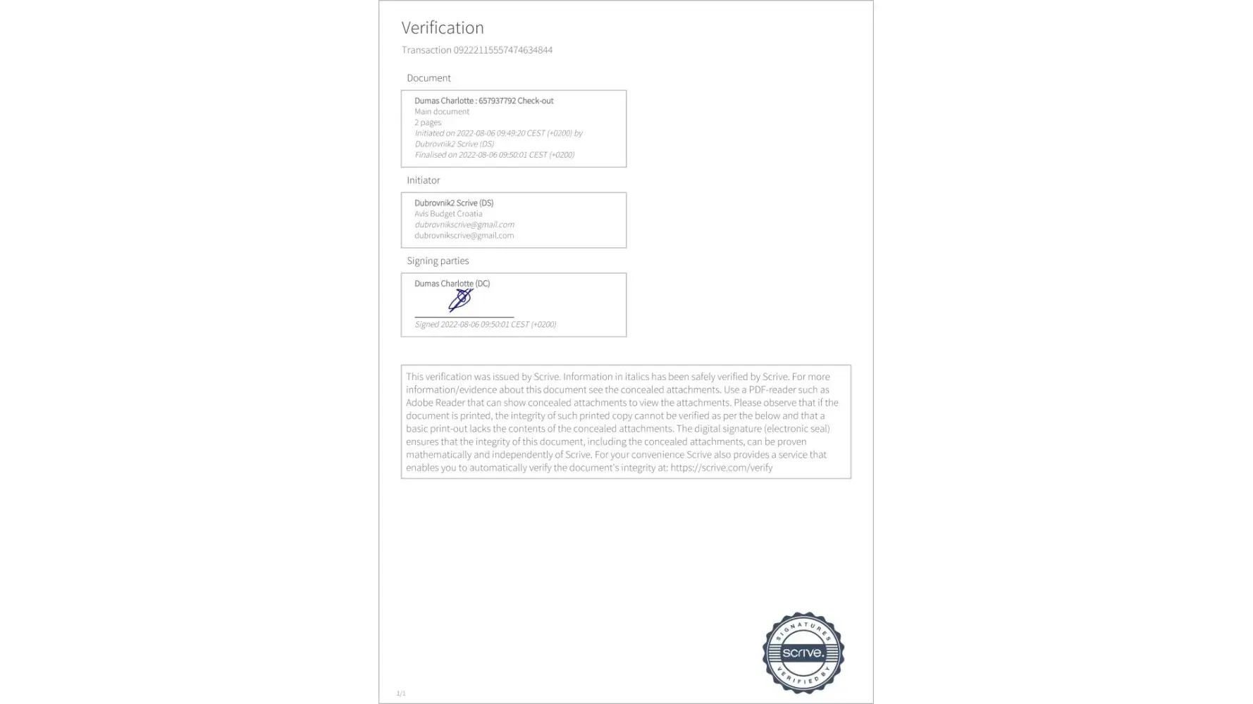 On19 October 2022 I received an E receipt from Avis in the amount of $3453.44 USD assigned to contract number 9*6