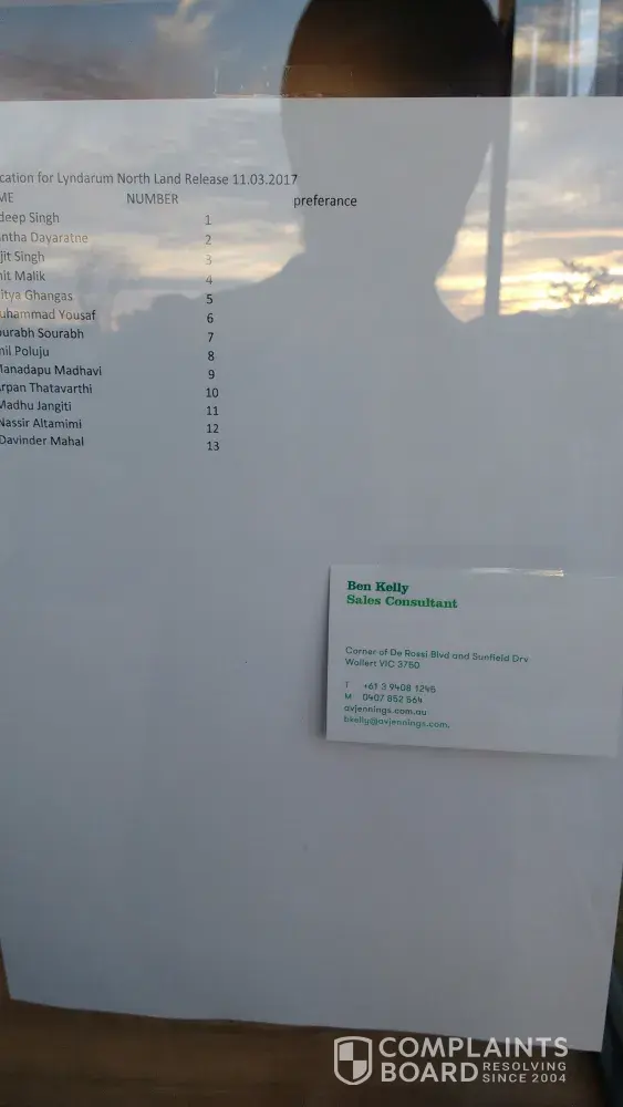 However the sales agent Ben Kelly has released a list of 13 people today 10th March picture attached with the complaint.