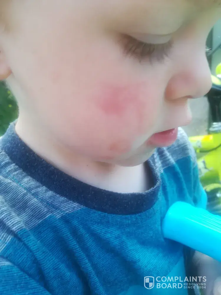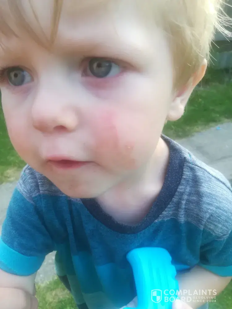 My 2 year old has had a very bad reaction to your suncream on his face!
