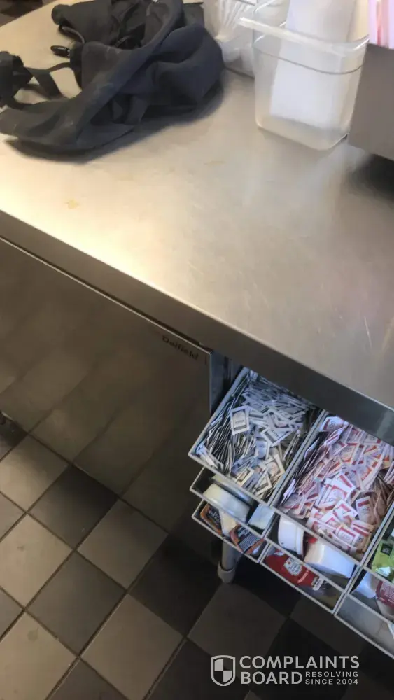 This is disgusting this is how your place looks everyday. Your manager is rude to customers and employees. Your food is cold there is whitish blond pink hair in your cold food and when it's brought to the manager she treats you like your a piece of [censored] and that's not right. Your manager is only in it for the money not the business maybe you should have kept the right manager and got rid of the problem manager. Must be nice loosing money because of your manager. If you decide to send someone to check the store don't give them a heads up. If you let them know you will be there on a certain day they will clean the store from top to bottom and once you are done the cleaning stops. As soon as the one manager left all cleaning stopped. Please catch them when the store is like this don't give them any notice.