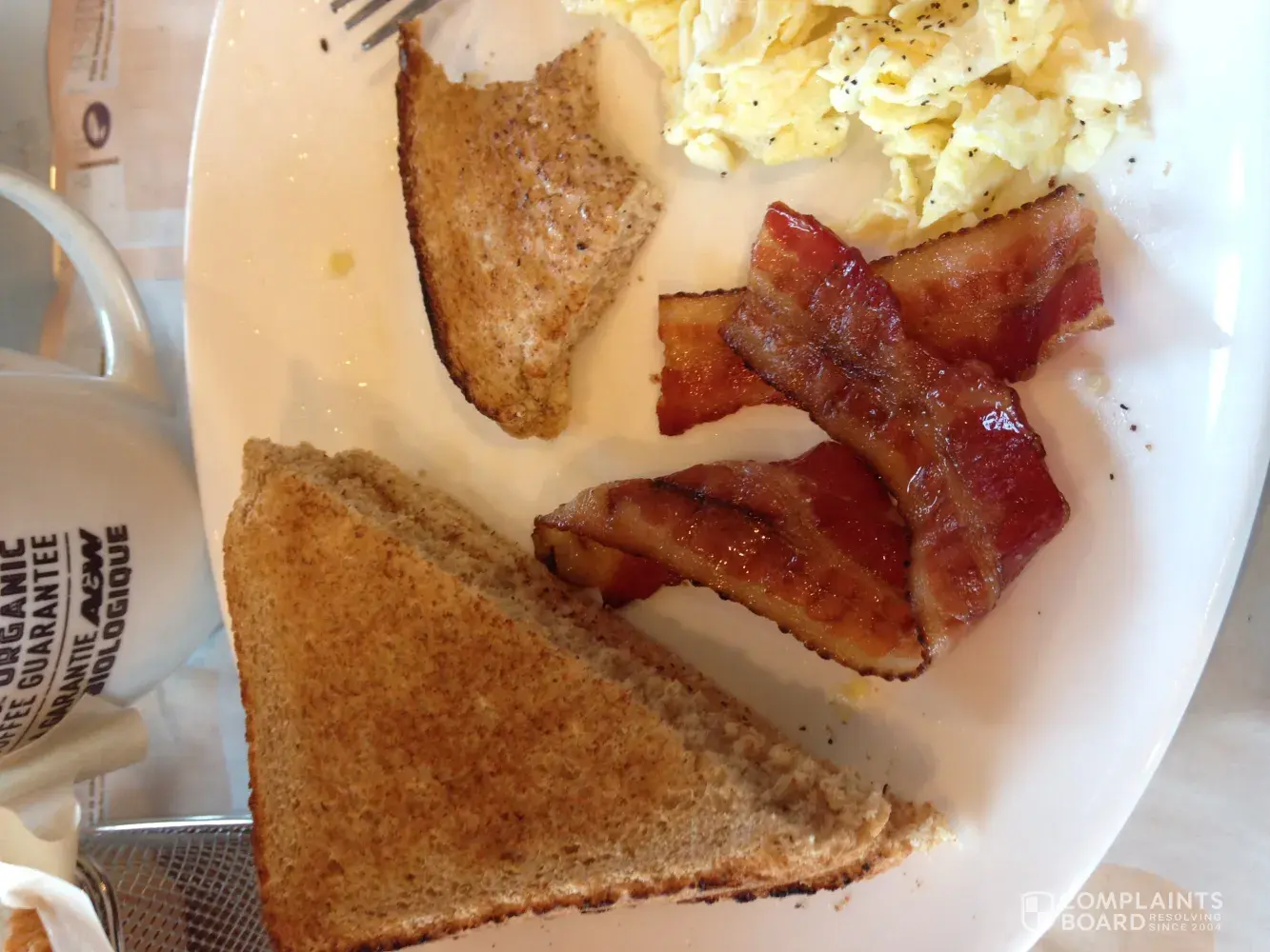 So hungry this morning so I went to my favourite a&w 17 ave se calgary ab branch. Staff are very accomodating service were great but omg my bacon is soft and greasy. Looks like its been sitting on the counter for hours and hours cant eat it. I used to have crispy and hot bacon serve. So disappointed today. There should be a time check if the bacon is still ok to be serve.