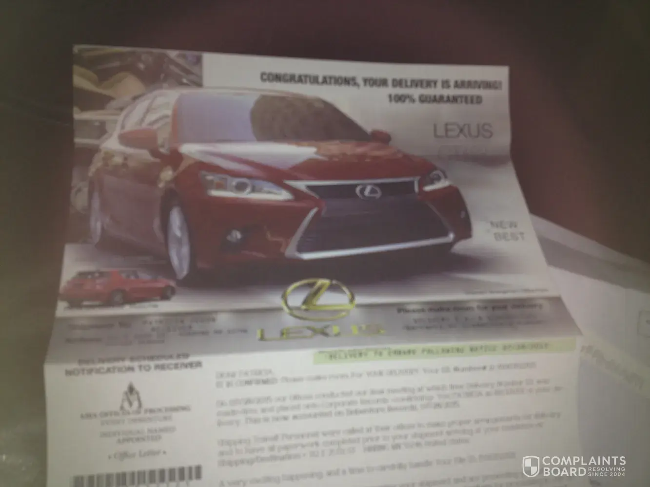 I received an award letter today saying I could be the winner of a Lexus CT 200 hybrid. Who are these people and how can they ask for $20.00