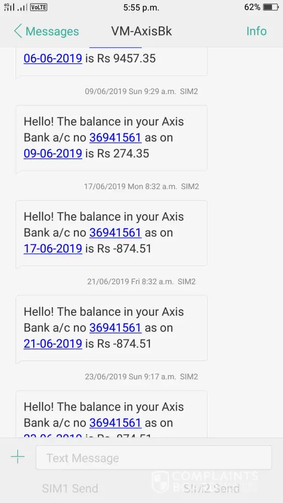 I am having my axis salary account. for last 6 months my account is getting cut under lean charges and consolidated charges but no details are given for consolidated charges. my full salary is deducted before the company deposit in account.