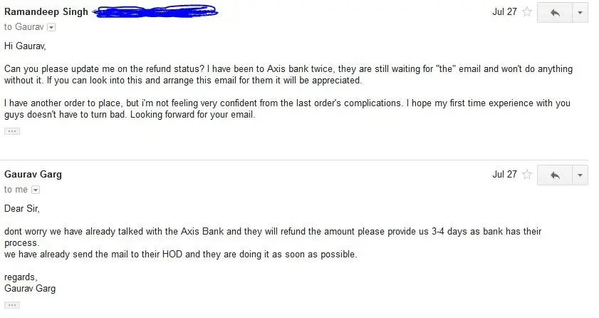 I have been trying to ask the both parties to send each other the emails and so that their stupid circular (due to which my account was debit again with the charges) can be waived, and the amount be refunded back to my account.